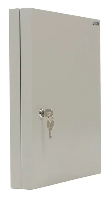 Рейки для подвешивания расположены с одной сторон на фронтальной панели и могут переставляться на различные уровни по отношению друг к другу. Дверка и боковые профили изготовлены из алюминия, а основание, крышка и панели из высококачественного пластика.