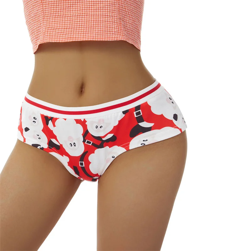 hirigin Women Christmas Holiday Sexy Panties Low Waist Santa Claus Snowman Print Briefs Knicker Lingerie Underwear Underpants