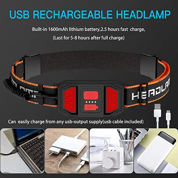 【 3 режима освещения и Hands-Free】Эта перезаряжаемая фара имеет высокий и низкий и стробоскопический светильник. Задний красный светильник безопасности для предупреждающих бегунов, велосипедов или автомобилей. Простой в использовании, просто нажмите красную кнопку на Батарейный отсек: фара и красный индикатор безопасности хвост светильник будет светильник в одно и то же время. Светодиодный оголовье-светильник Hands free идеально подходит для инспекторов, ремонтников, автомехаников, домовладельцев и ремесленников. Благодаря этой отличной фары вы почувствуете невиданное чувство безопасности в темноте.