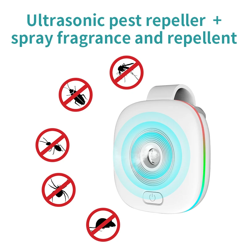 Working principle: Ultrasonic pest repellent + spray mosquito repellent; rechargeable;