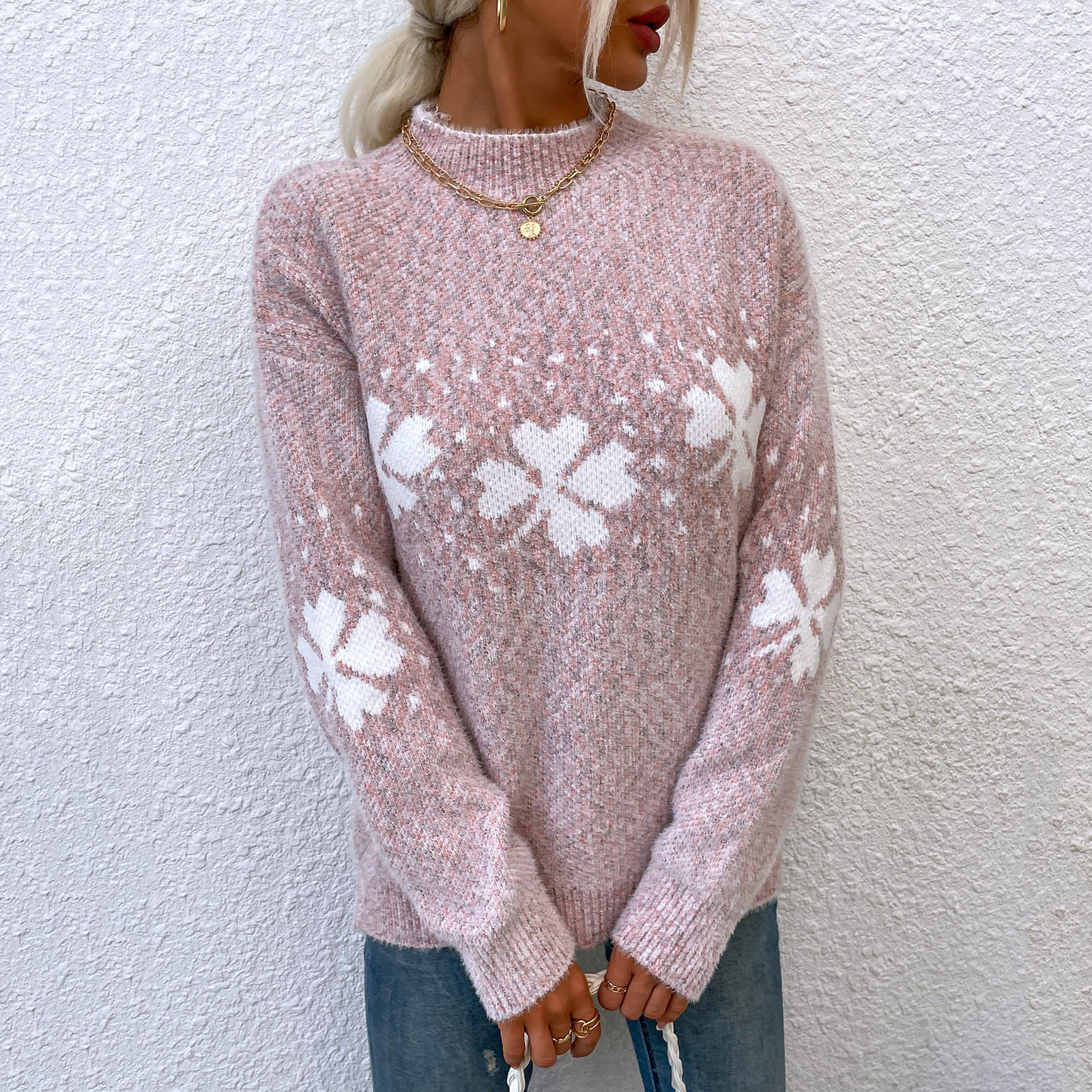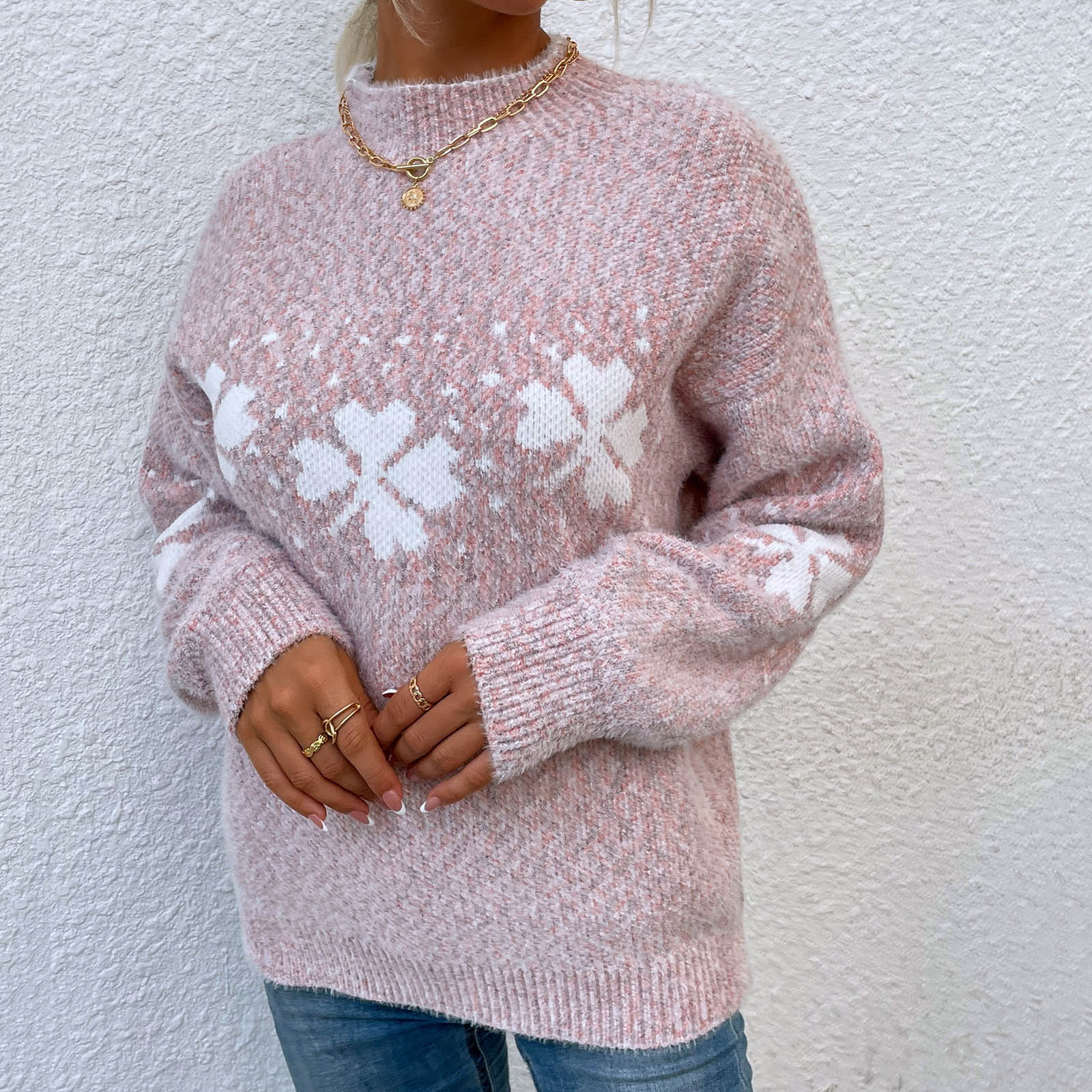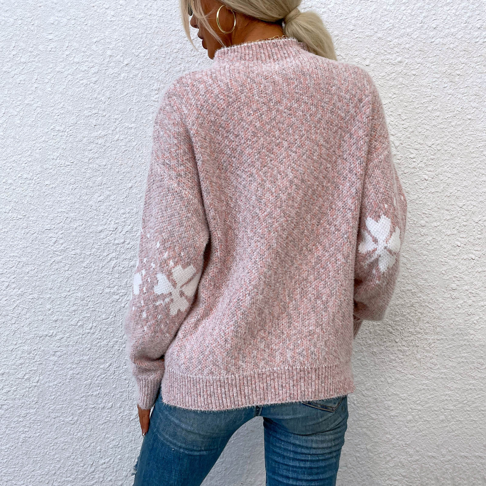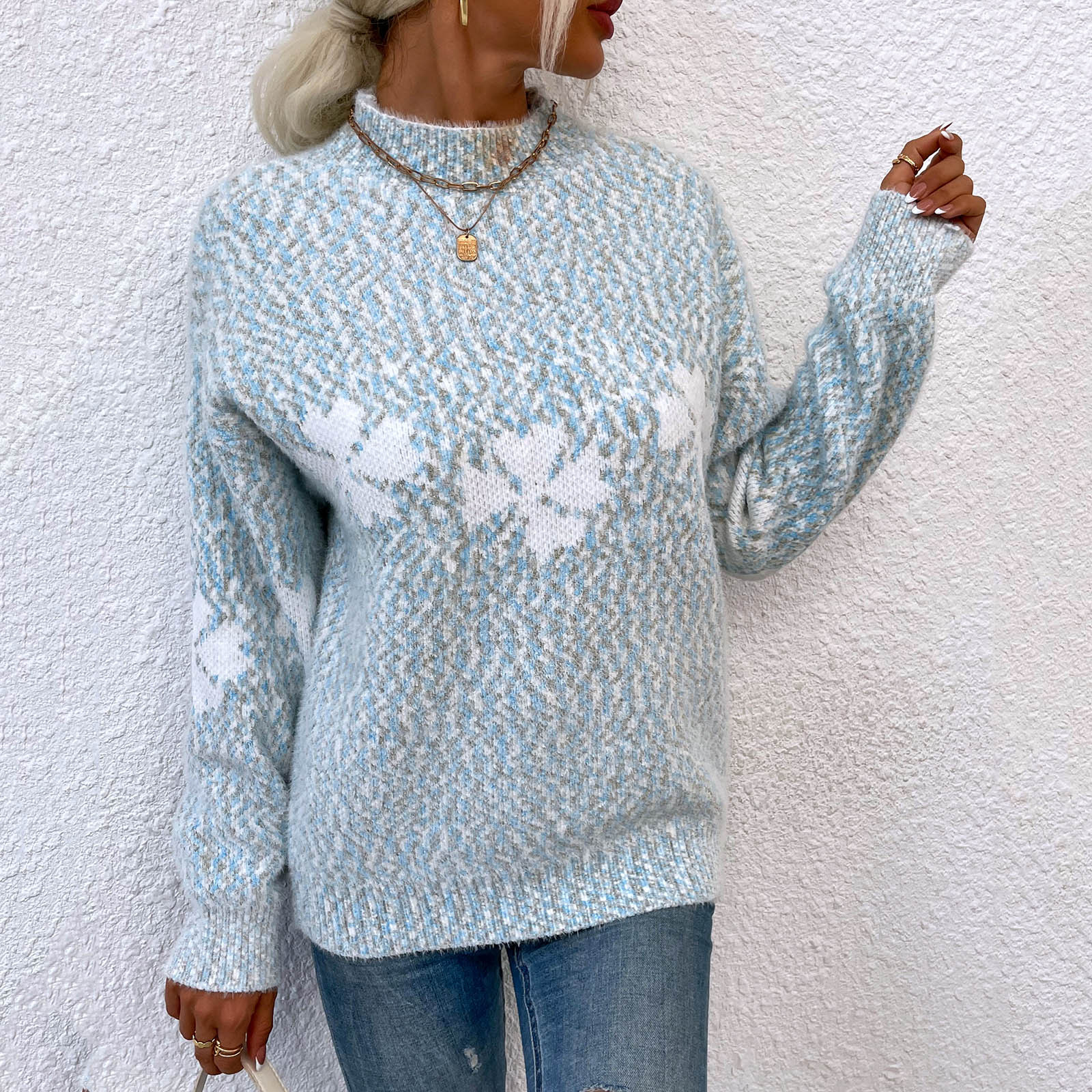 Женский Рождественский пуловер с высокой горловиной, свитер со снежинками