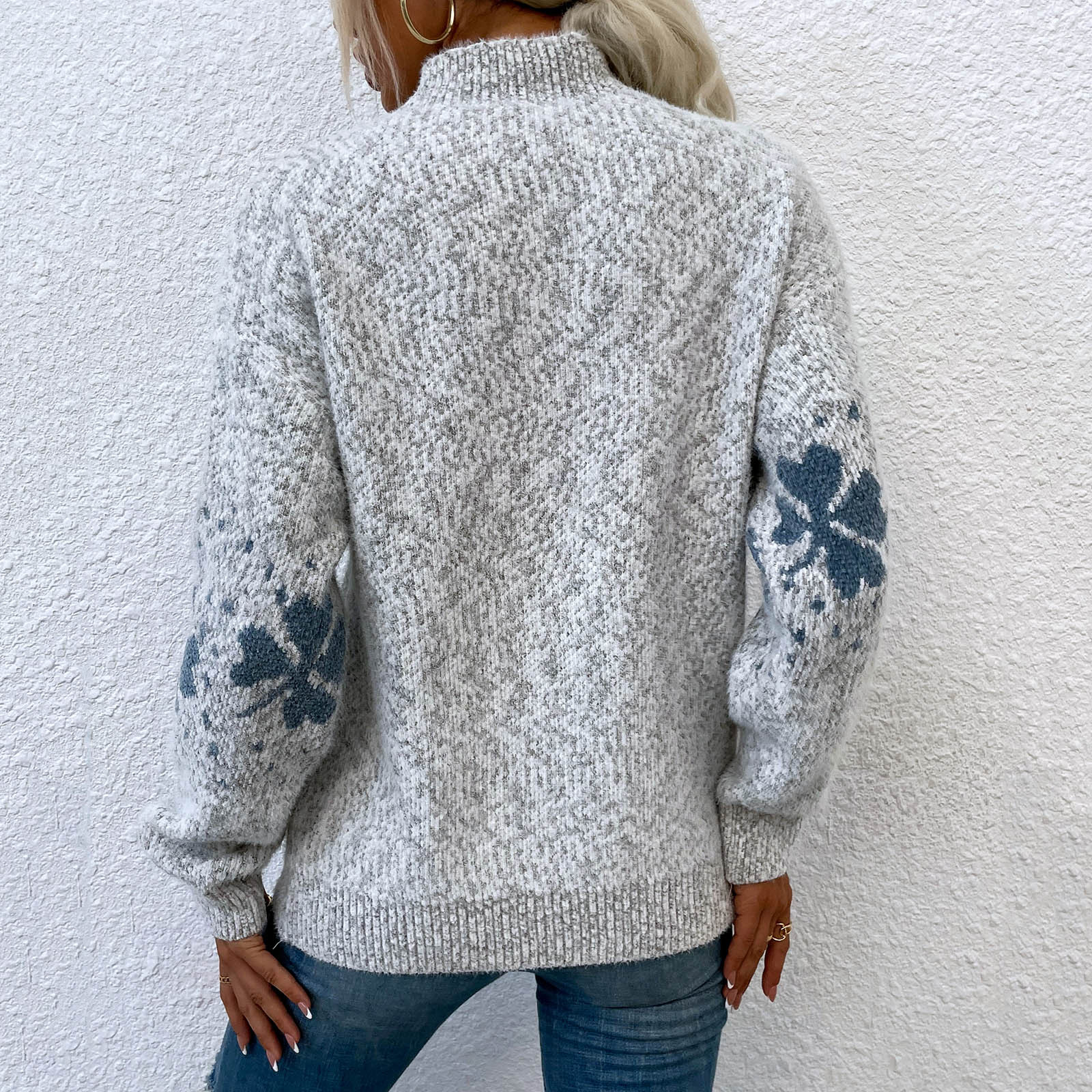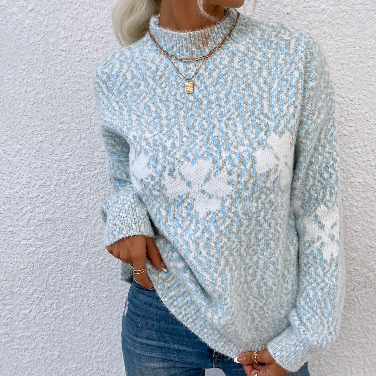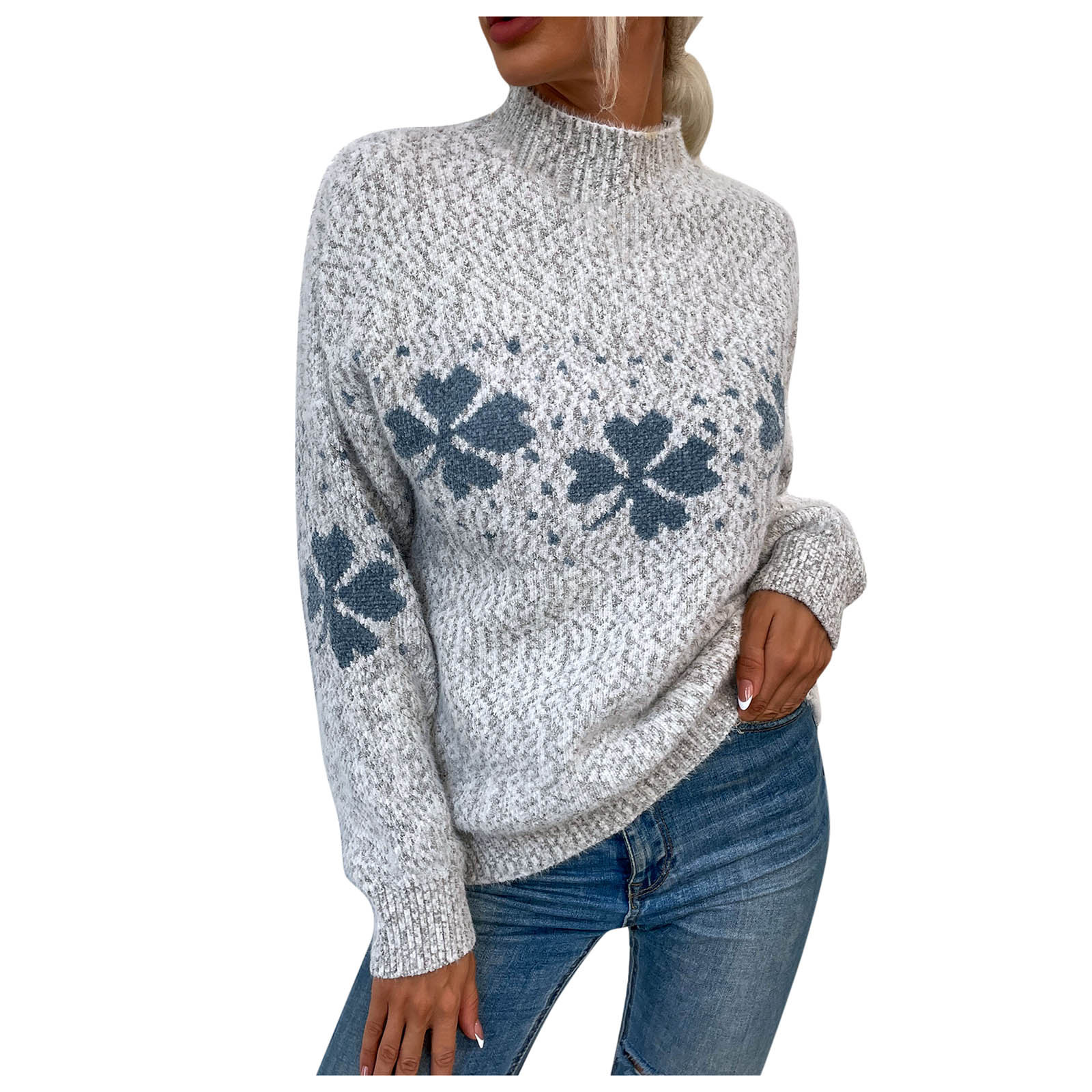 Женский Рождественский пуловер с высокой горловиной, свитер со снежинками