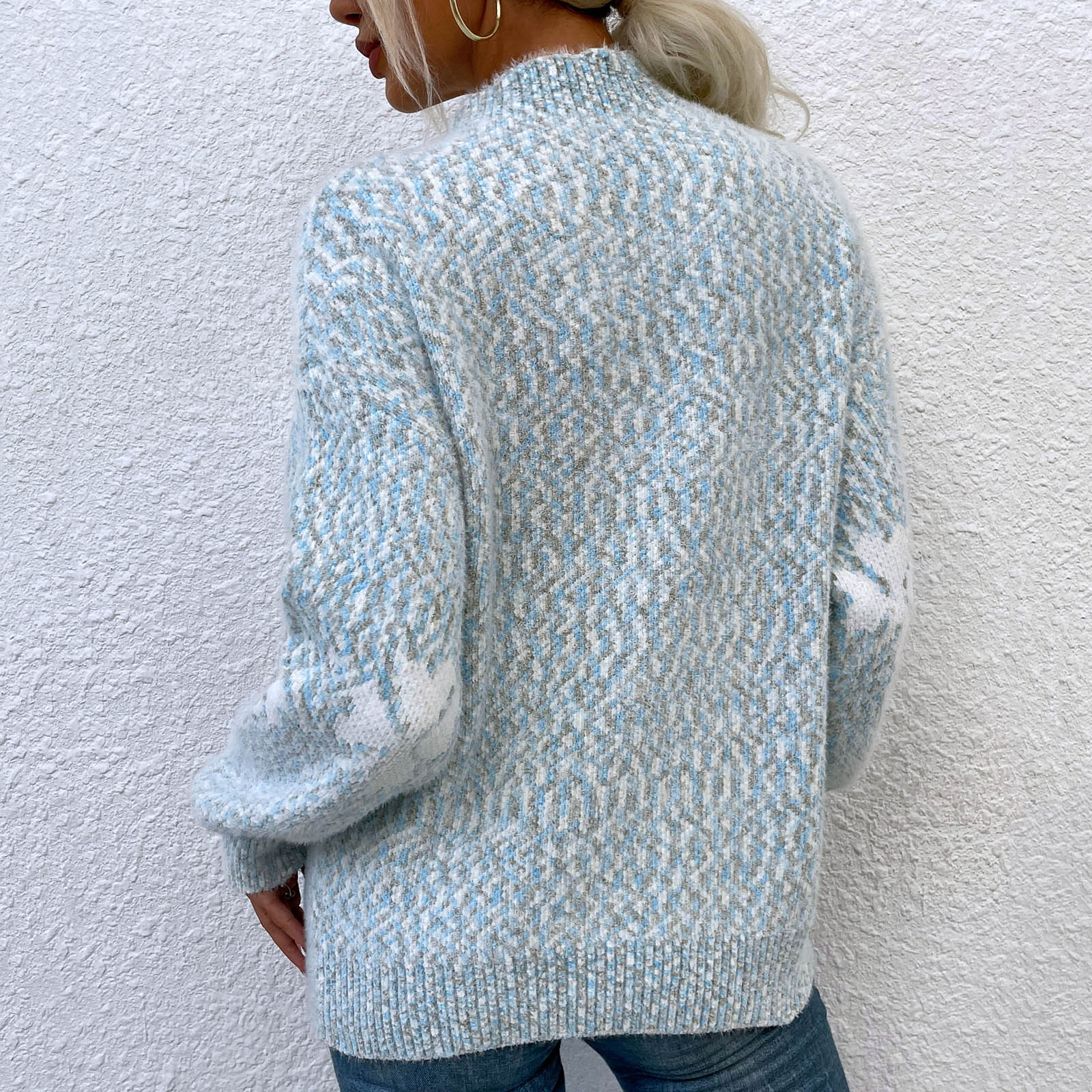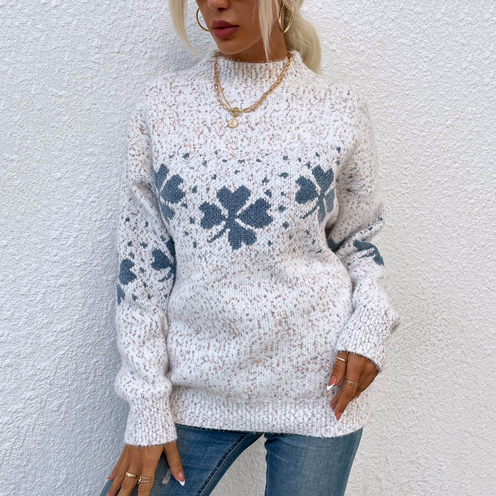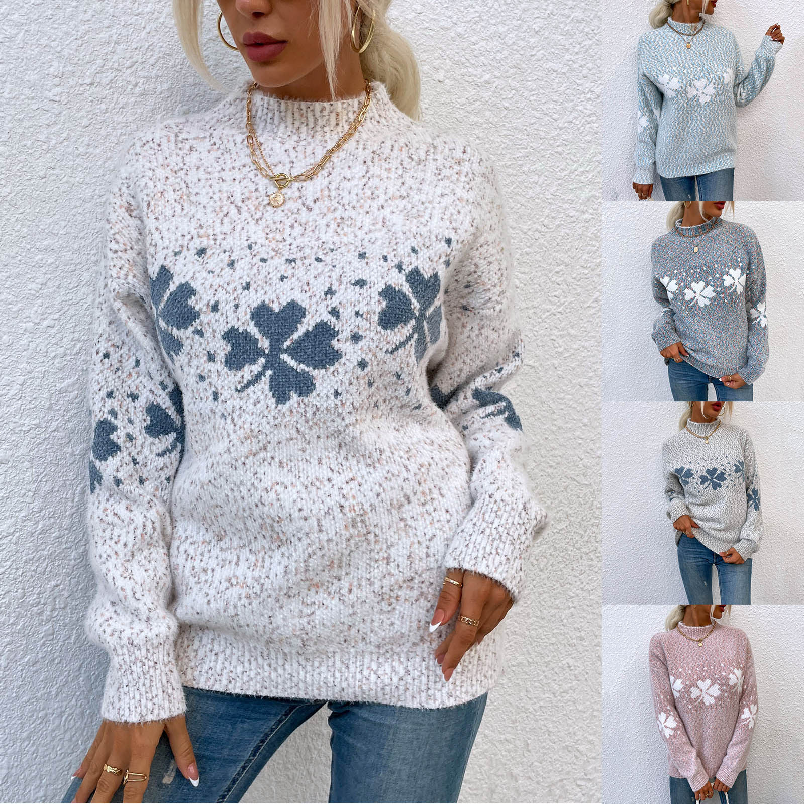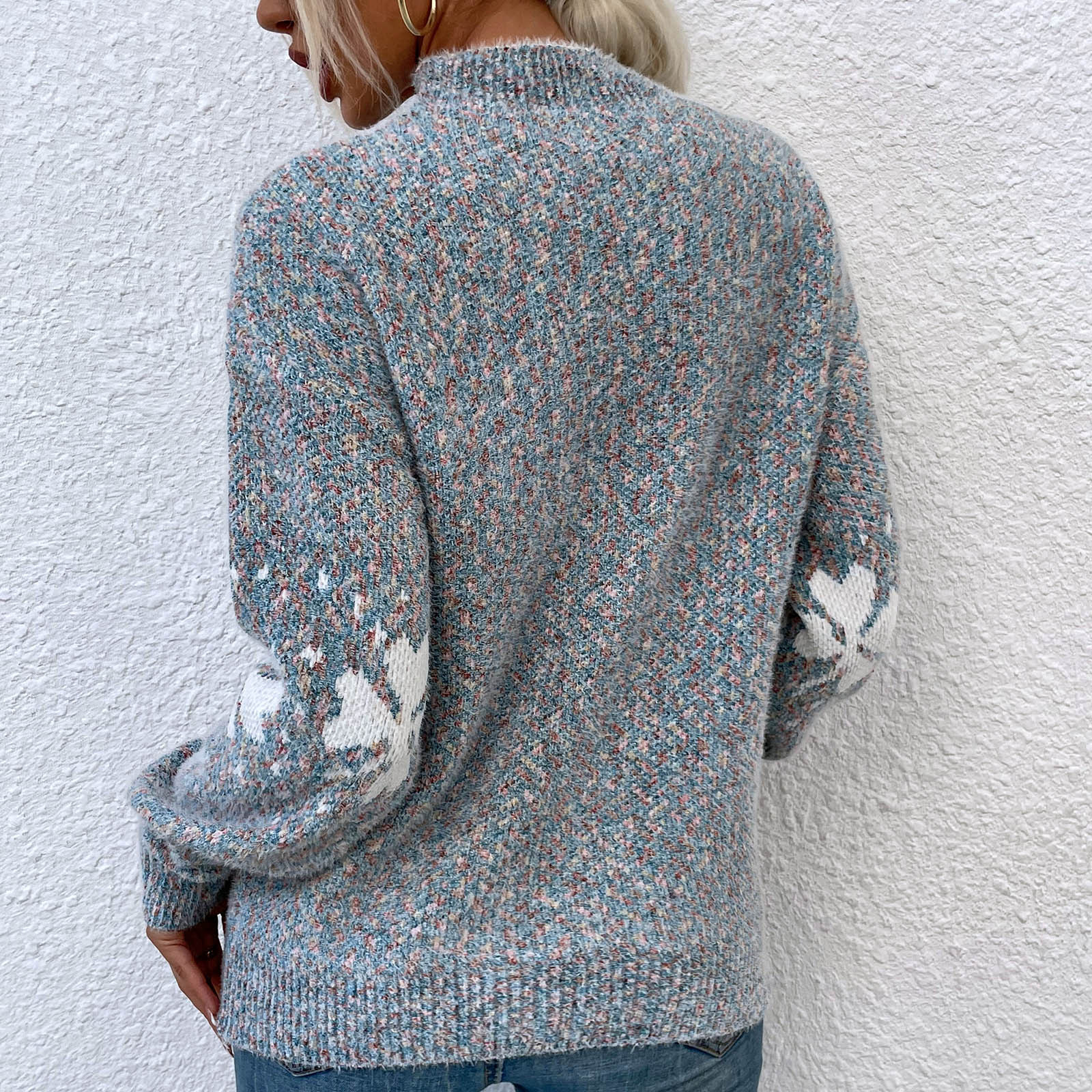 Женский Рождественский пуловер с высокой горловиной, свитер со снежинками