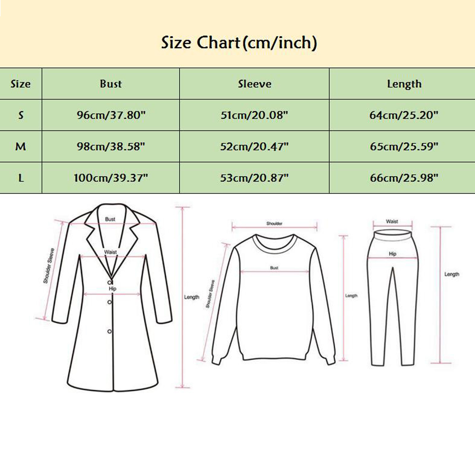 | Размер: M | Бюст: 98 см/38,58 дюйма | Рукав: 52 см/20,47 дюйма | Длина: 65 см/25,59 дюйма |