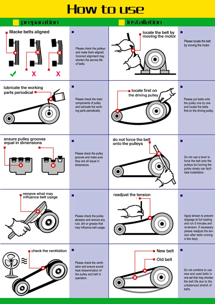 2. V-образный ремень на основе модели в качестве стандартного, длина внутреннего обхвата только для справки.