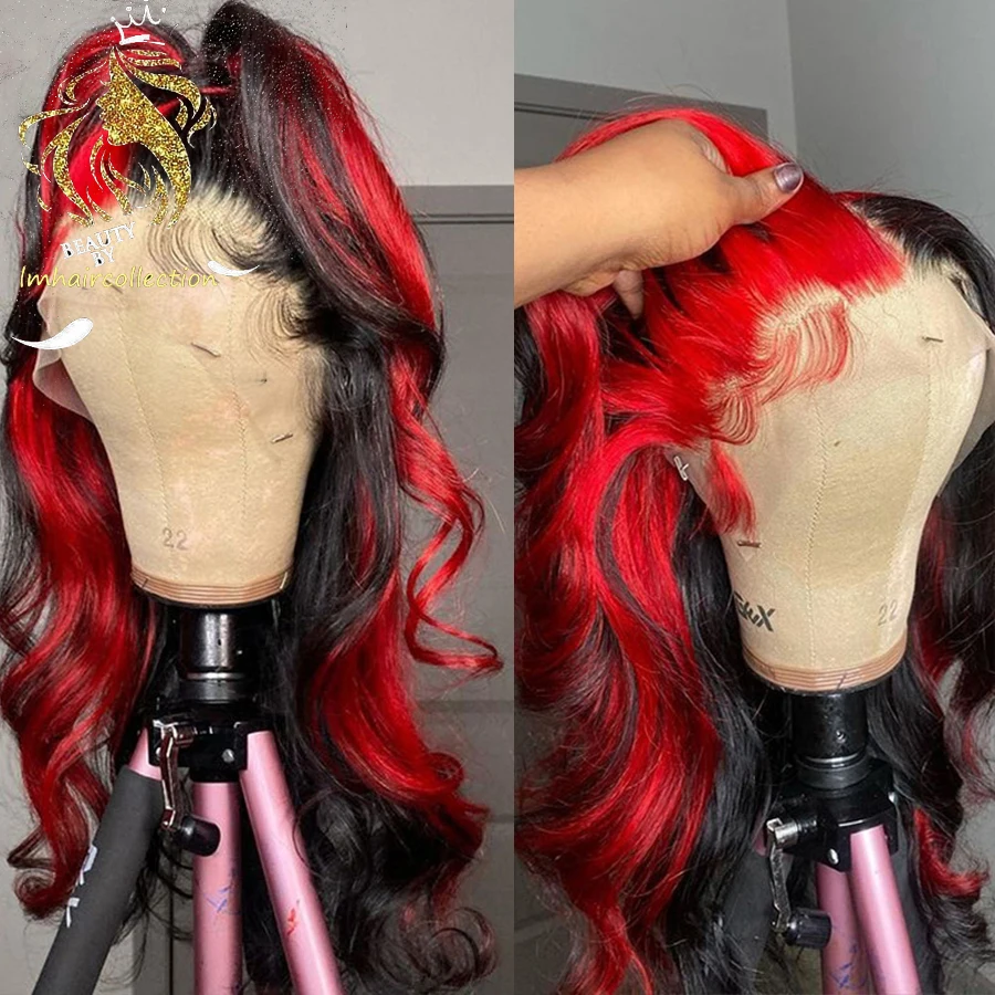 Красный цветной парик с фронтальным кружевом Омбре Выделите красные человеческие волосы парики для женщин prepucked 180% бразильские волнистые парики Remy