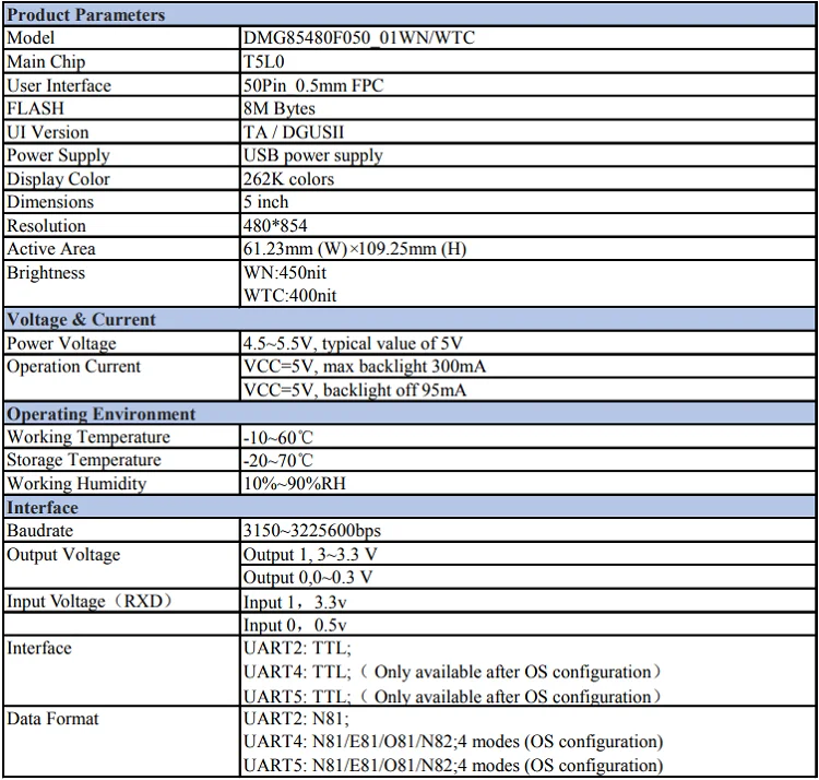 2, 5 дюймов, разрешение 480*854 пикселей, 262K цвета, IPS-TFT-LCD, широкий угол обзора.