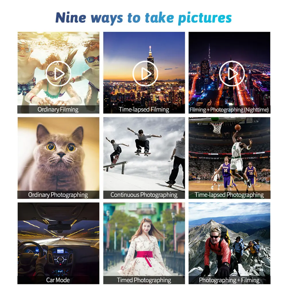 4. Различные аксессуары, спортивный дизайн: оснащен беспроводным пультом дистанционного управления 2,4G и различными аксессуарами, очень подходит для занятий спортом на открытом воздухе, таких как мотоциклы, катание на лыжах, лыжи, гоночные автомобили, горные велосипеды, парапланеры/freefall, прыжки банджи, скалолазание, плавание, дайвинг, серфинг, каноэ, рафтинг и т. Д.