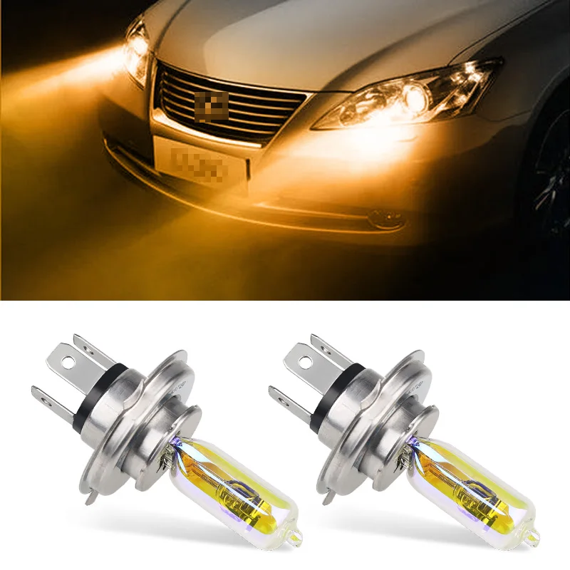 2 шт. H4 12V 60/55W P43T галогенная лампа 2300 К золотой желтый фар автомобиля кварцевые Стекло h4 60 Вт 55 Вт высокий низкий пучок галогенная лампа