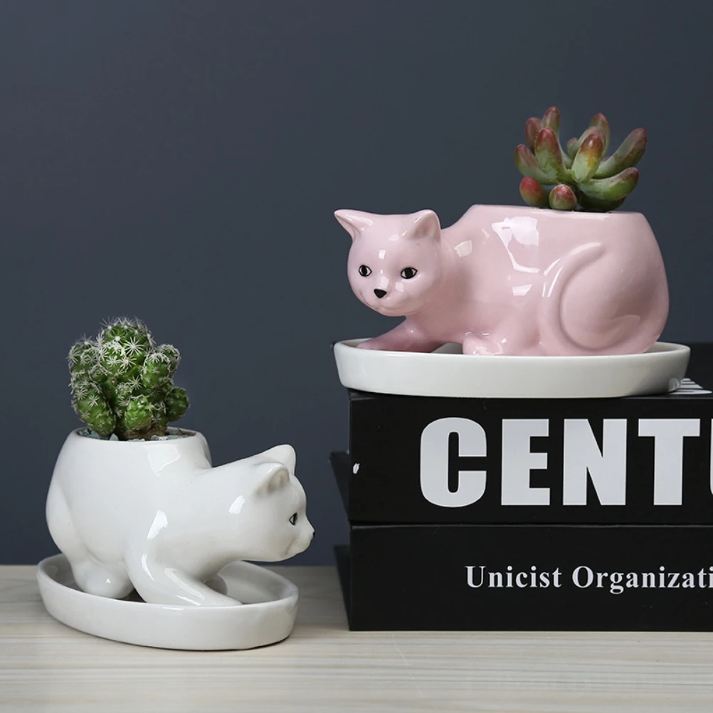 Мультяшный кот цветочный горшок животное керамический цветочный горшок симпатичная ваза кактус сочные растения в горшке цветок композиция контейнер украшение для дома
