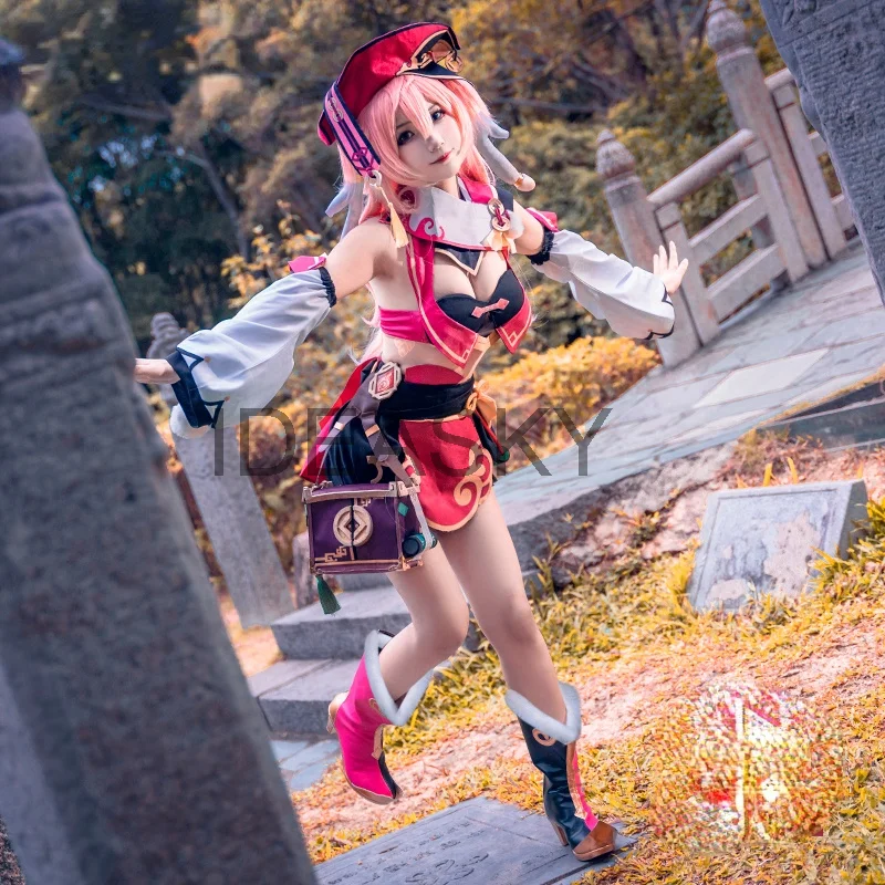 Genshin impact cosplay yan fei yanfei/костюм для косплея; Обувь с париком; Ботинки; Шапка с рожками; Куртка; Сумка; Одежда для татуировок
