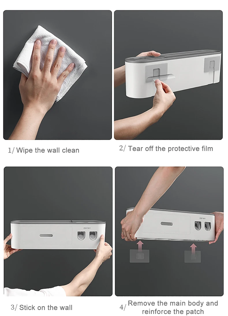 1.[Automatic toothpaste dispenser] The WREWING toothbrush and toothpaste holder is equipped with 2 automatic toothpaste squeezers, which are convenient for children and adults to use toothpaste separately. The dispenser squeezes the most appropriate amount each time to prevent wasting toothpaste and automatically dispense toothpaste for you.