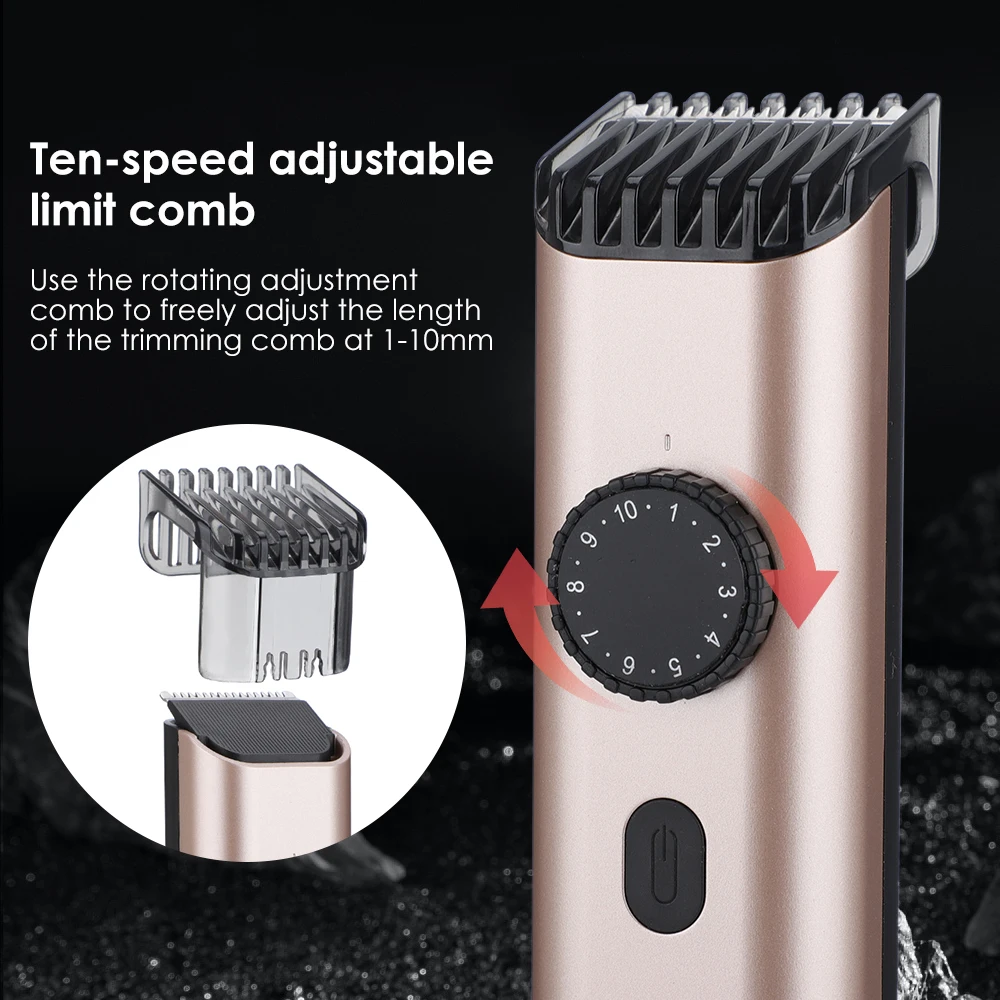 2. 10-скоростная Регулируемая Концевая расческа, используйте вращающуюся регулировочную расческу, чтобы свободно регулировать длину обрезки гребня на 1-10 мм, позволяет обрезать слой слоем в зависимости от длины, чтобы создать персонализированную форму.