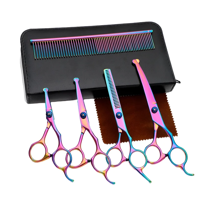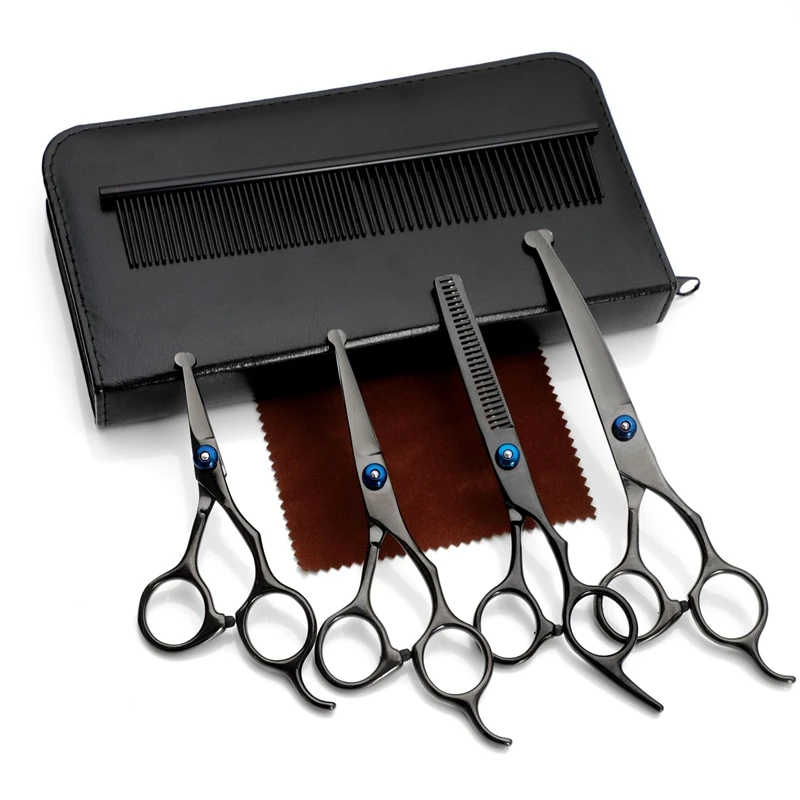 Описание товара4,5 5,5 6,5 дюймов черный профессиональный безопасный круглый наконечник японская нержавеющая сталь уход за домашними животными салон Стрижка волос филировочные ножницы