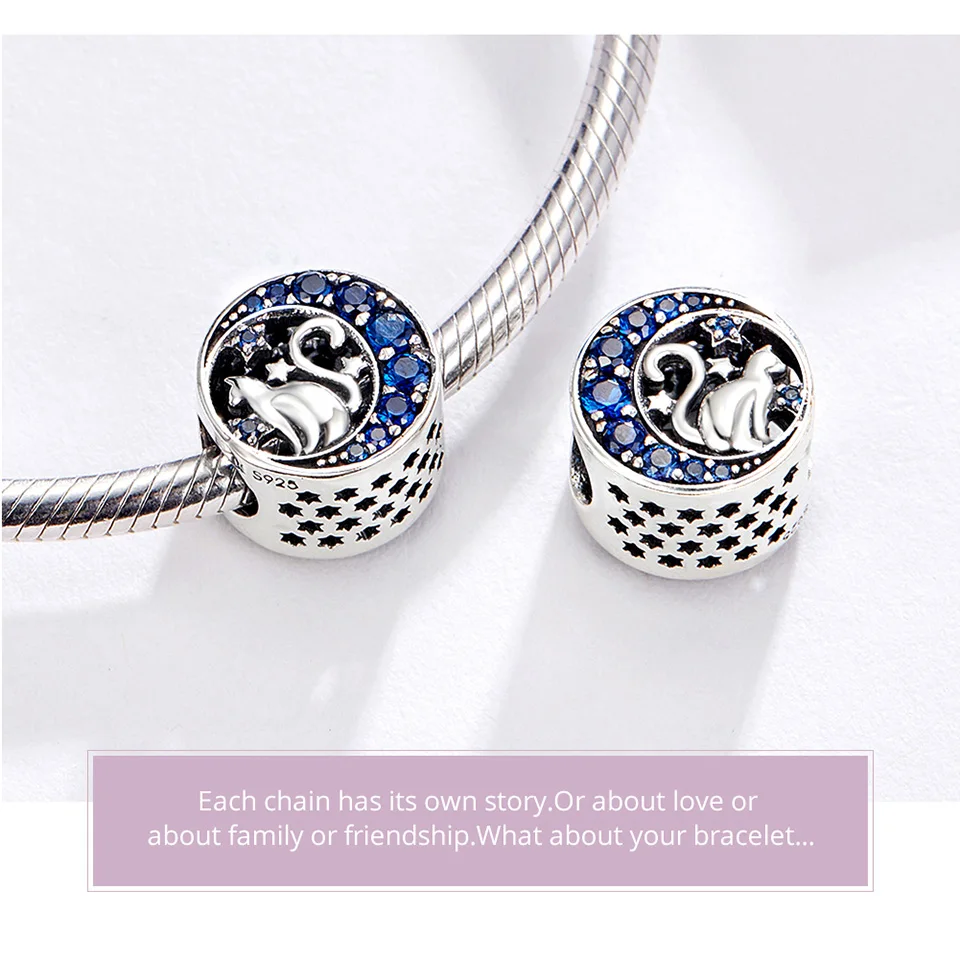 Bamoer 100% Стерлинговое Серебро 925 пробы Голубая Луна милый кот Подвеска из бисера для женщин оригинальный DIY браслет юбилей Ювелирные изделия Подарки