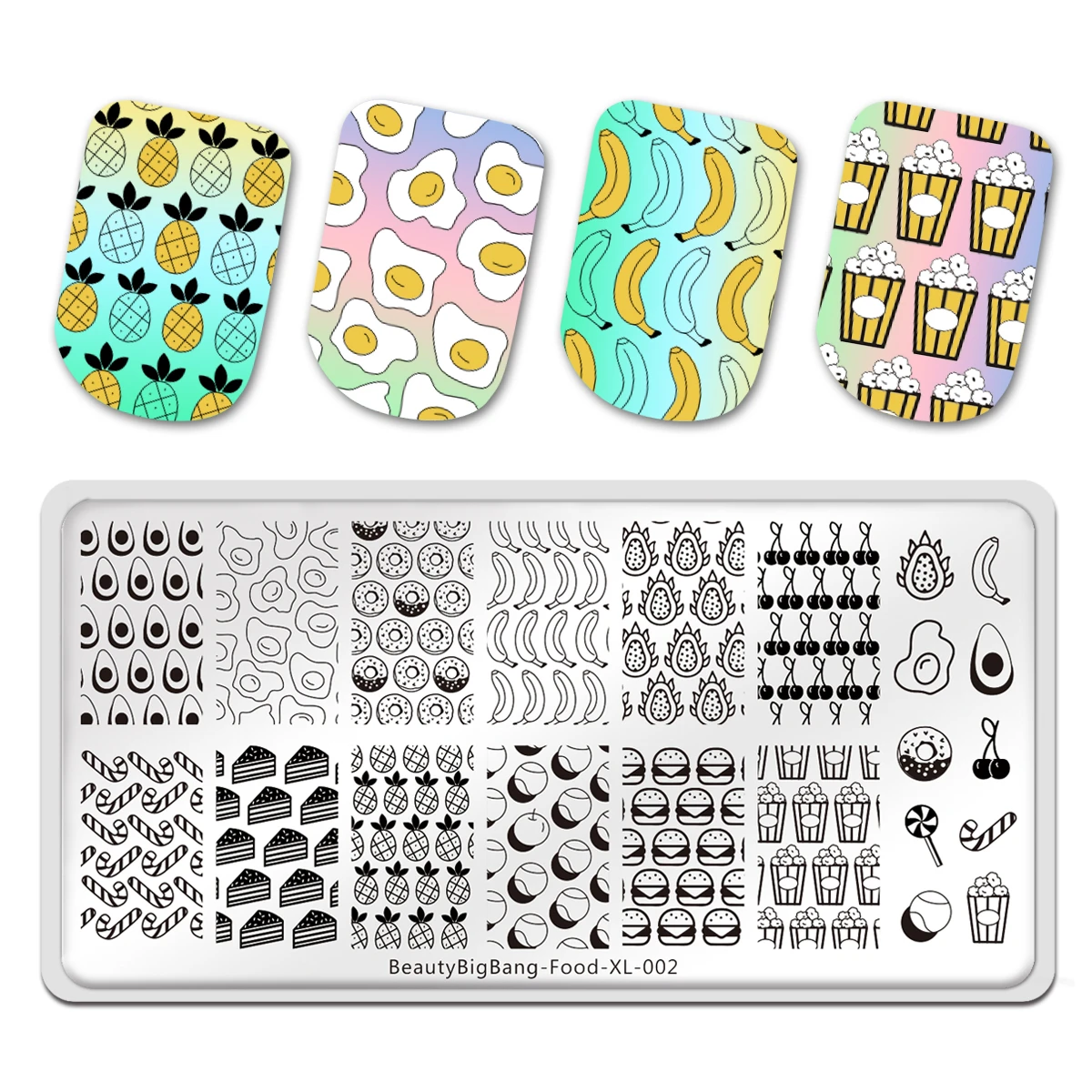 BeautyBigBang штамповки пластины из нержавеющей стали еда 002 торт банан конфеты сэндвич Гамбург теннис Новый дизайн ногтей трафарет шаблон