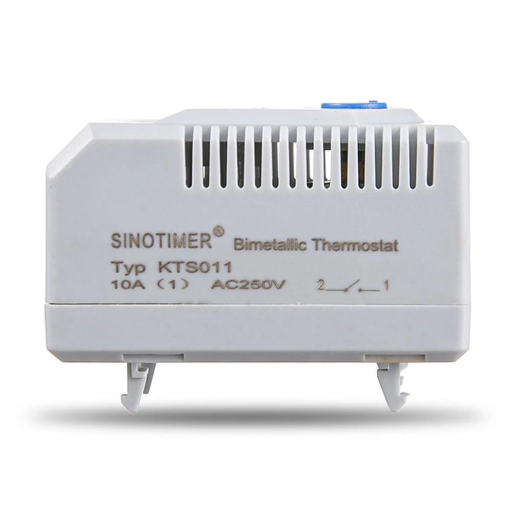 ![]() KTO011/KTS011/ZR011 0-60 Degree Cabinet Mechanical Temperature Controller Normally Open / Closed Compact Thermostat Thermoregulator for Heating Cooling Feature: The thermostat shell is made of high-quality plastic material, with fine workmanship, environmental protection, safety, and durability. Its temperature control range is from 0° to 60°, which is very suitable for controlling heaters, filter fans, cooling equipment and other signal equipment in homes, markets, etc. Large data scale, adjustable buttons, easy and convenient to adjust and control the temperature, the color of the thermostat button (red/blue) is your choice. It adopts standard guide rail clamp design, 4 feet seat, easy to install and disassemble. The circuit interface at the bottom of the thermostat can make the wiring firmer and safer. Specification: Switch temperature difference: 7K (±4K tolerance) Sensor element: Constant temperature bimetal Contact type: Snap-action contact Service life:> 100,000 cycles Wiring mode: 2 terminals, maximum clamping torque 0.5Nm: hard wire 2.5mm²; stranded wire (with wire end ferrule) 1.5mm² Installation: Clamp for 35mm DIN rail, EN60715 (or EF 118 series for outlet filter) Shell: Plastic conforms to UL94 V-0, light gray Operating/storage temperature: -45 to +80°C (-49 to +176°F) Operating/storage humidity: Maximum. 90% RH (non-condensing) Protection class: IP20 Button color: Red, Blue, Red + Blue Note: Due to the different monitor and light effect, the actual color of the item might be slightly different from the color showed on the pictures. Thank you! Please allow 1-2cm measuring deviation due to manual measurement. ![]() 1 X Temperature Controller