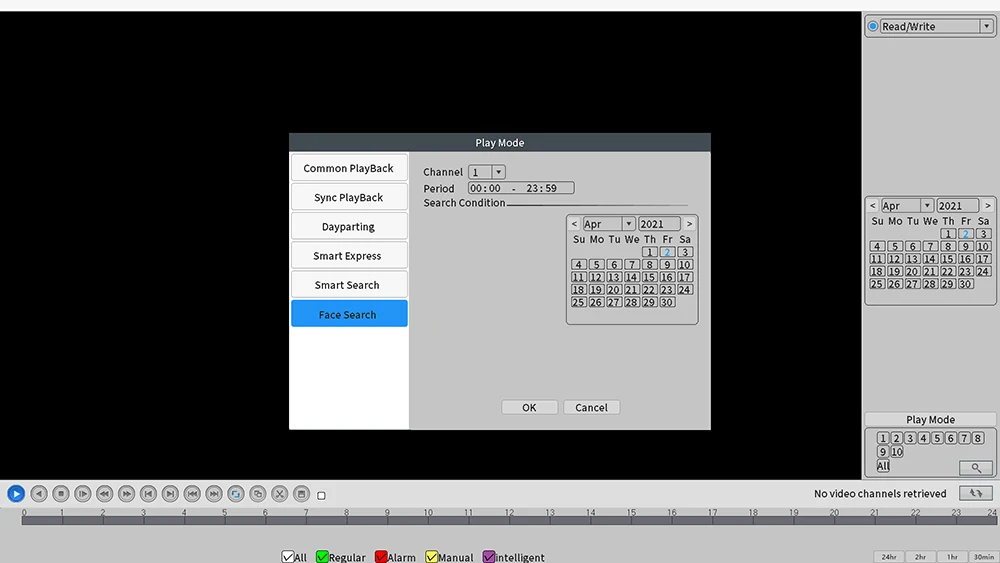 Режим поиска | Поиск по времени/календарю/событию/каналу/лицу | ||