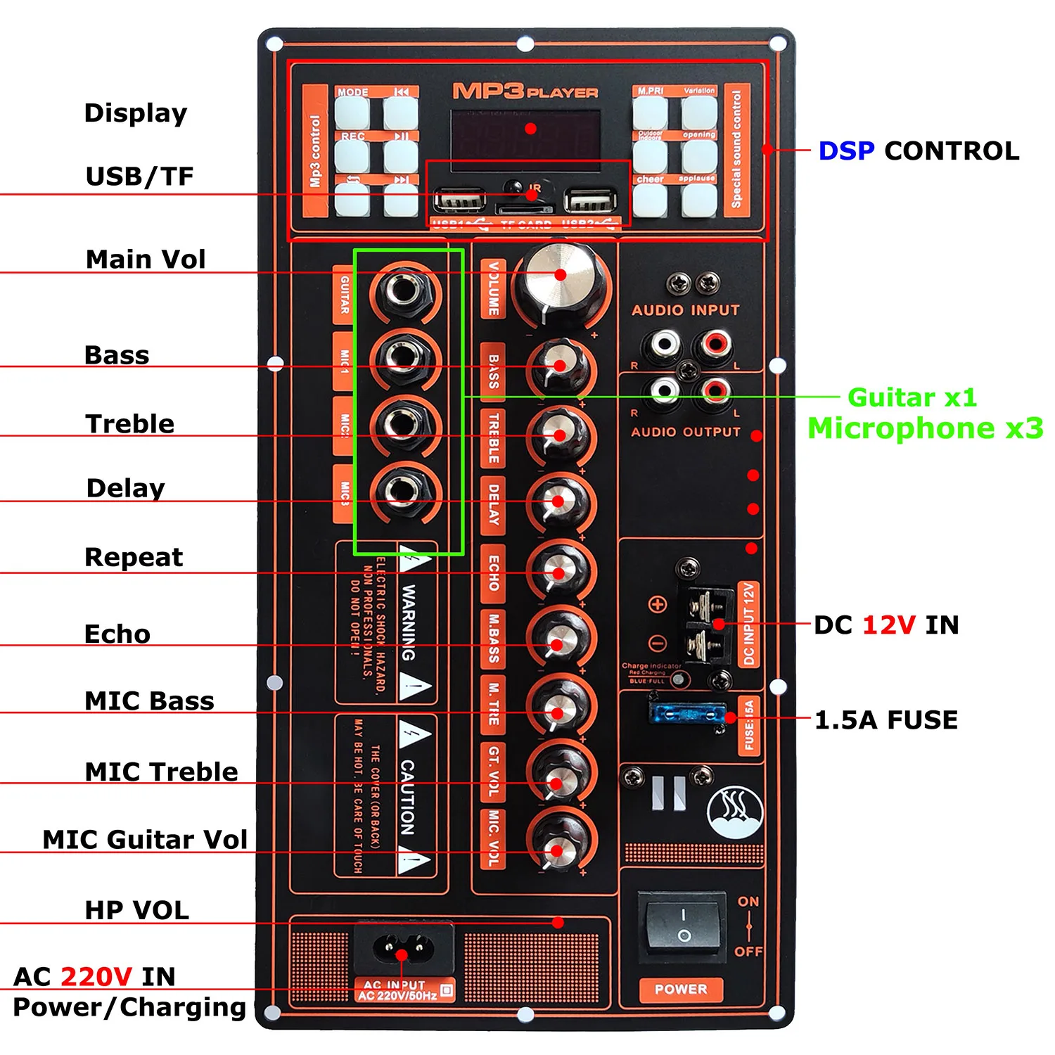 (1) Многофункциональная Плата усилителя мощности может быть оснащена одним нажатием и двойным нажатием. 8 дюймов, 10 дюймов, 12 дюймов, 15 дюймов, 18 дюймов стержень колонки, караоке, этап аудио высокой мощности 300 Вт/4 Ом снаружи звука "блок управления, беспроводной микрофон интерфейсом.