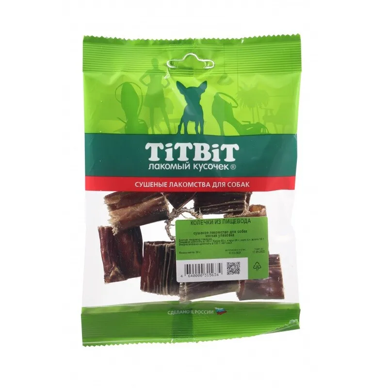 Высушенный говяжий пищевод, разрезанный поперёк на колечки шириной 2 см.Упаковка содержит 6-8 штук. Высокое содержание аминокислот, коллагена и микроэлементов. Способствуют укреплению десен и жевательных мышц. Оказывает положительное воздействие на состояние кожи, шерсти и общий обмен веществ собаки.