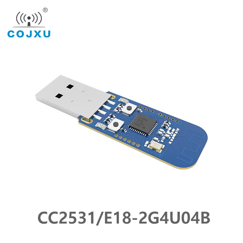 E18-2G4U04B использует чип CC2531 RF, импортированный из техасских инструментов. Чип интегрирует 8051 микрокомпьютер и беспроводной трансивер, и интегрирует PA + LNA, что значительно расширяет Расстояние связи и улучшает стабильность связи, и он оснащен ADC выборкой, удаленным PWM выходным управлением, дистанционное управление GPIO и другие функции