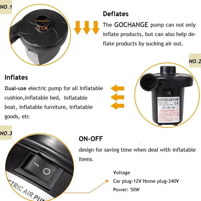 Воздушный насос не должен быть длиннее 10 минут постоянно работает. Охладите воздух насоса за 15 минут до того, как продолжите его использовать. Продукт не должен использоваться детьми. Два сопла не должны быть покрыты во время использования. Убедитесь, что в отверстиях нет песка, гальки и аналогичного разлива. Перед использованием выберите соответствующее сопло, чтобы уменьшить время работы.