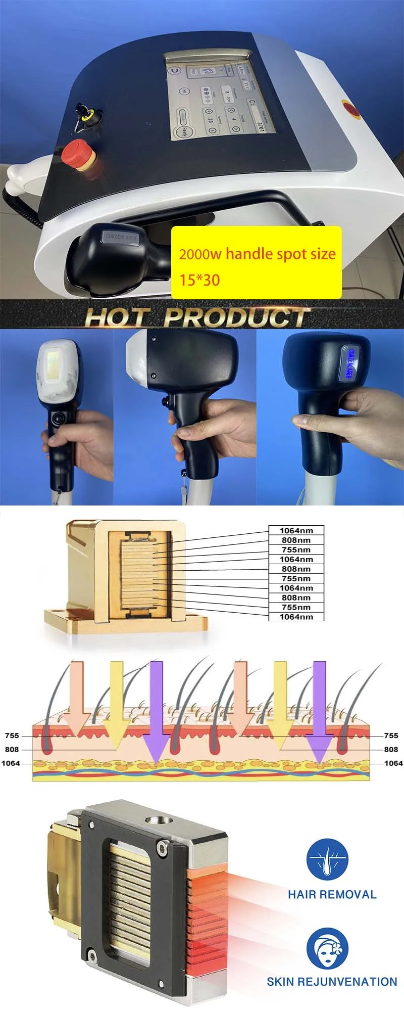 Товар | Вертикальный 755нм + 808нм + 1064нм диодный лазер для удаления волос |