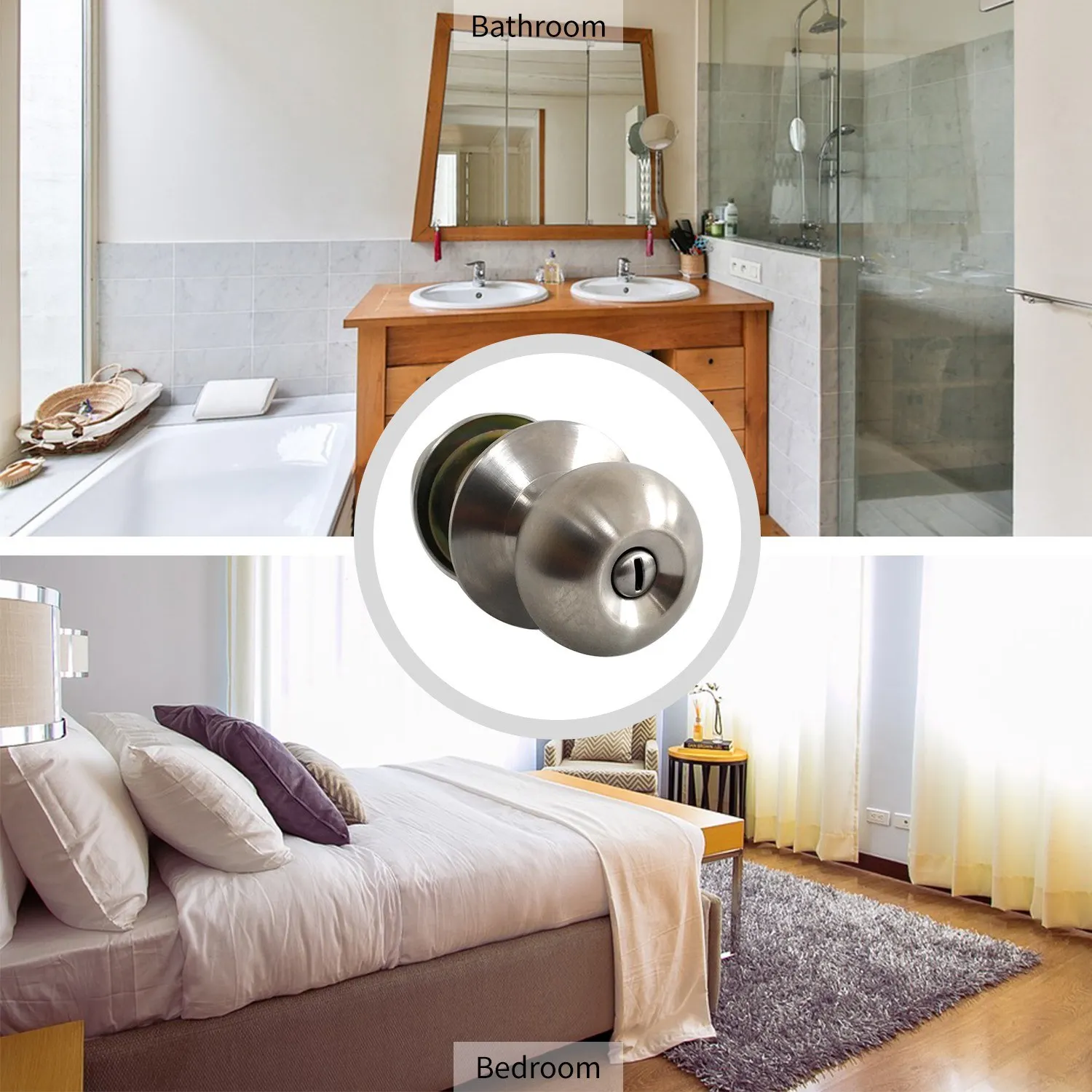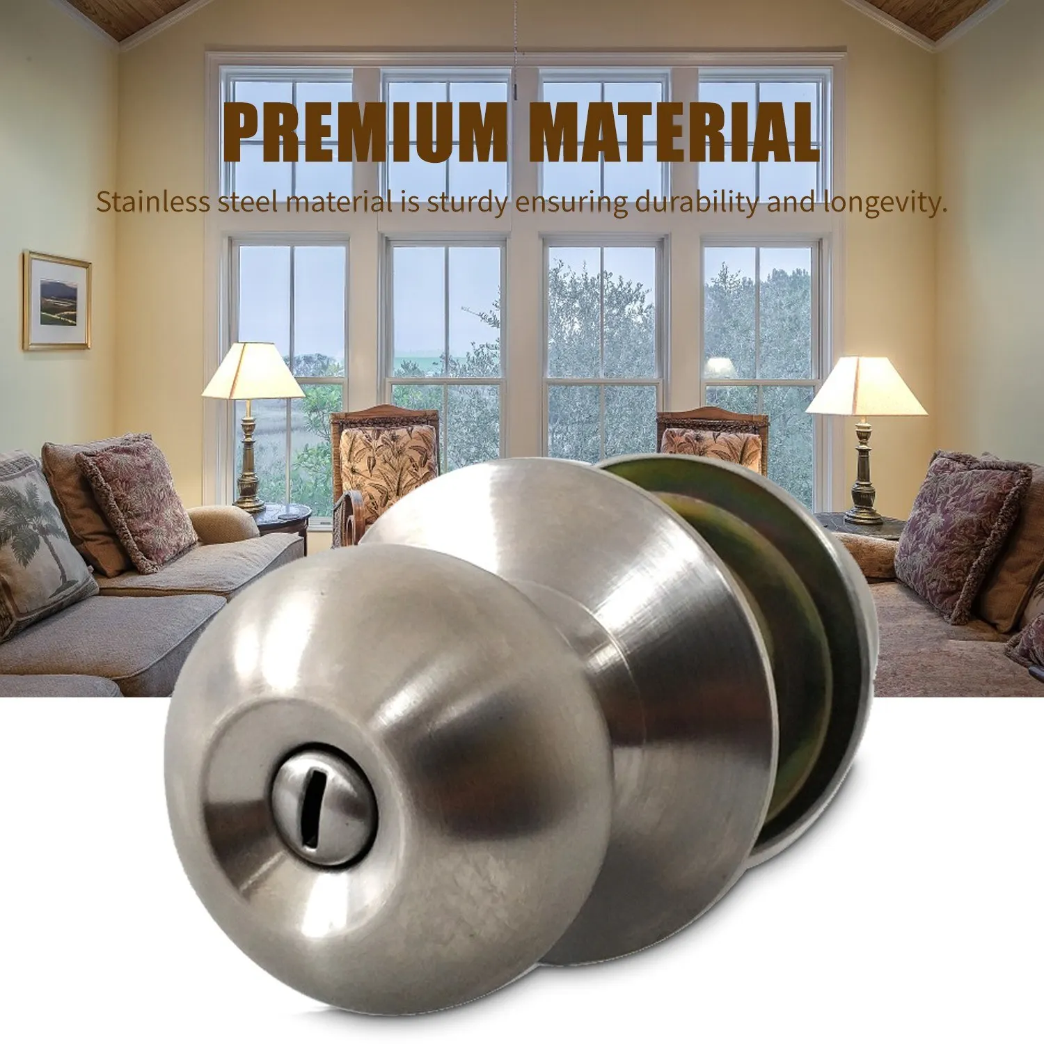 [Премиум Материал]Запирающая дверная ручка круглой формы сделана из нержавеющей стали, прочная, гарантирующая долговечность и долговечность.