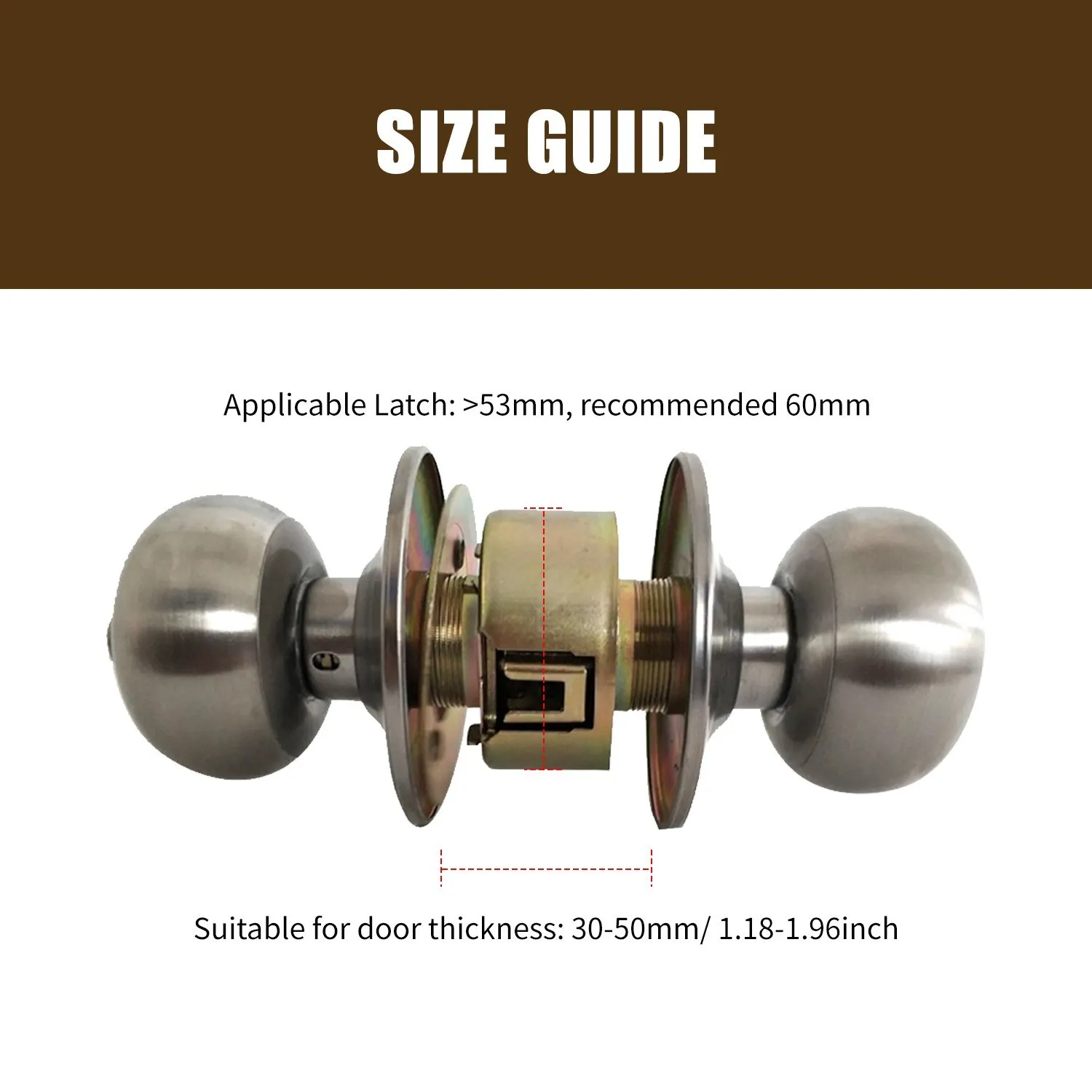 [Легко установить]Эти внутренние дверные ручки можно отрегулировать до 53 мм до 60 мм для легкой установки на двери, которые измеряют толщину от 30 до 50 мм.