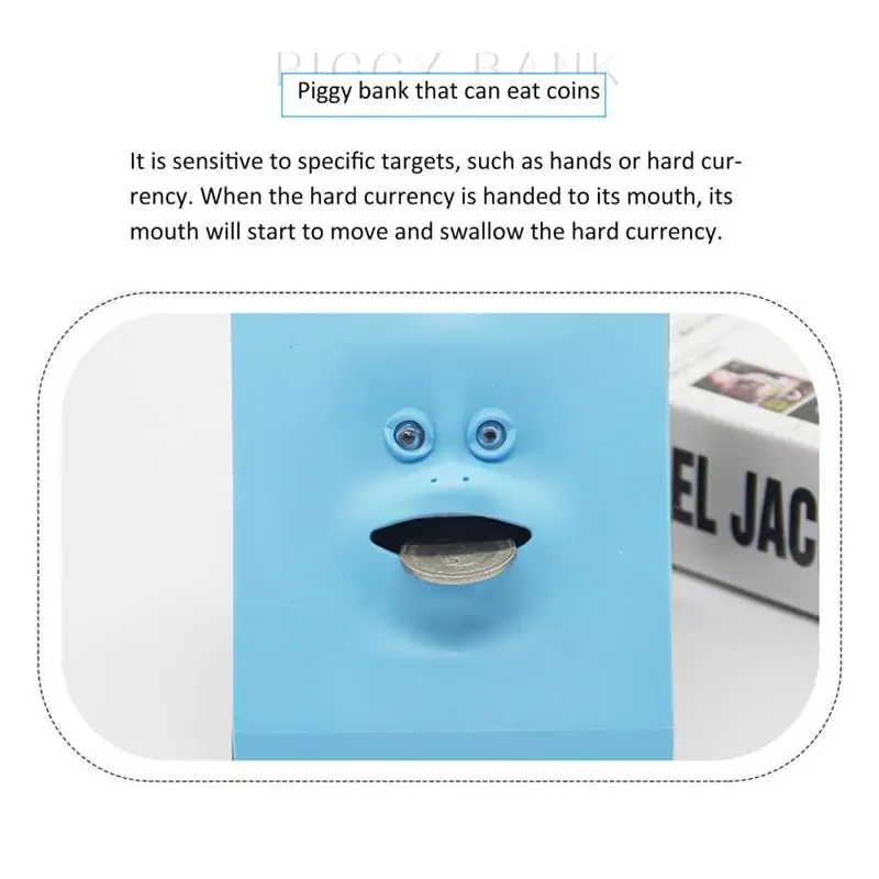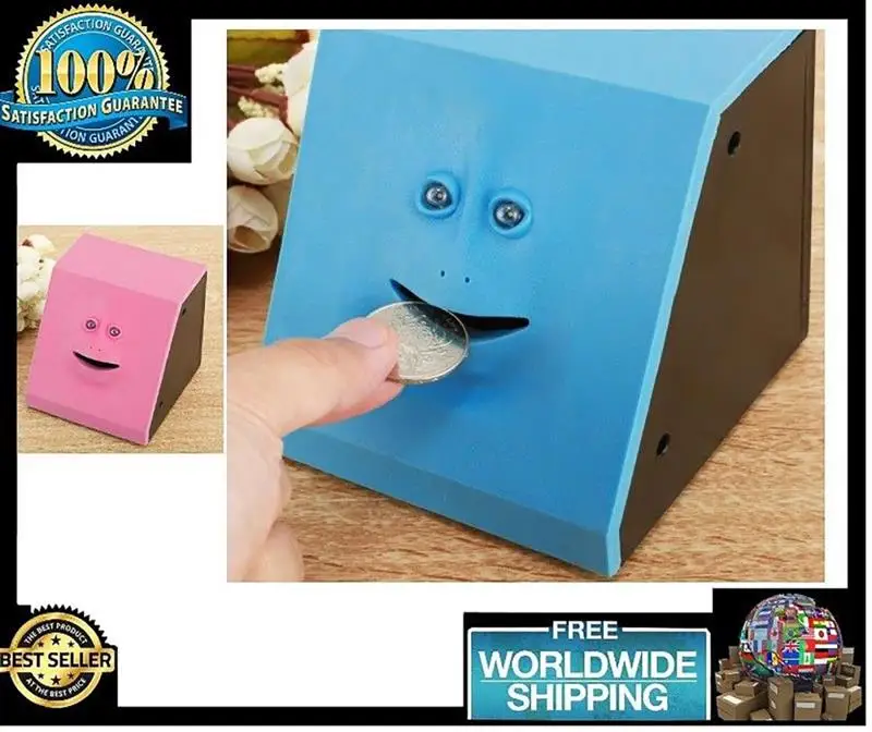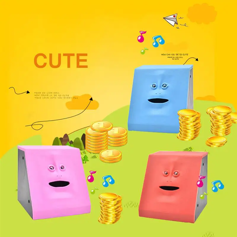 Put your coin on its mouth, and the face bank will "eat" it to its tummy.