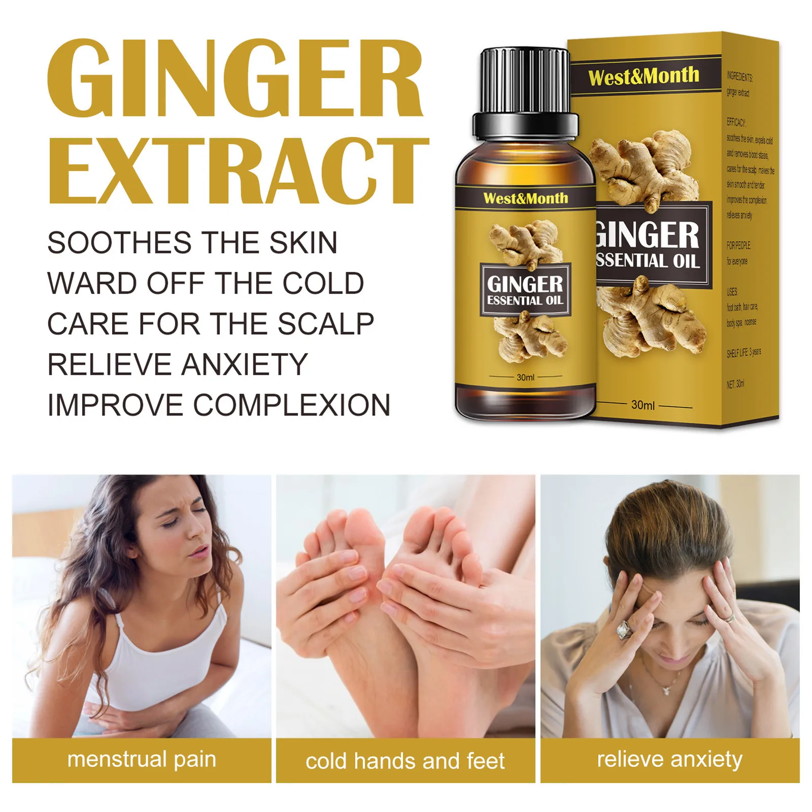 Эфирное масло имбиря, Сделано с изысканным экстрактом корня имбиря для укрепления кожи, помогает повысить метаболизм, успокаивает кожу от простуды, успокаивает кожу головы, снимает беспокойство и улучшает тонус кожи.