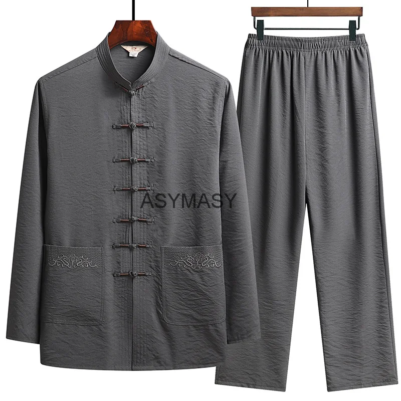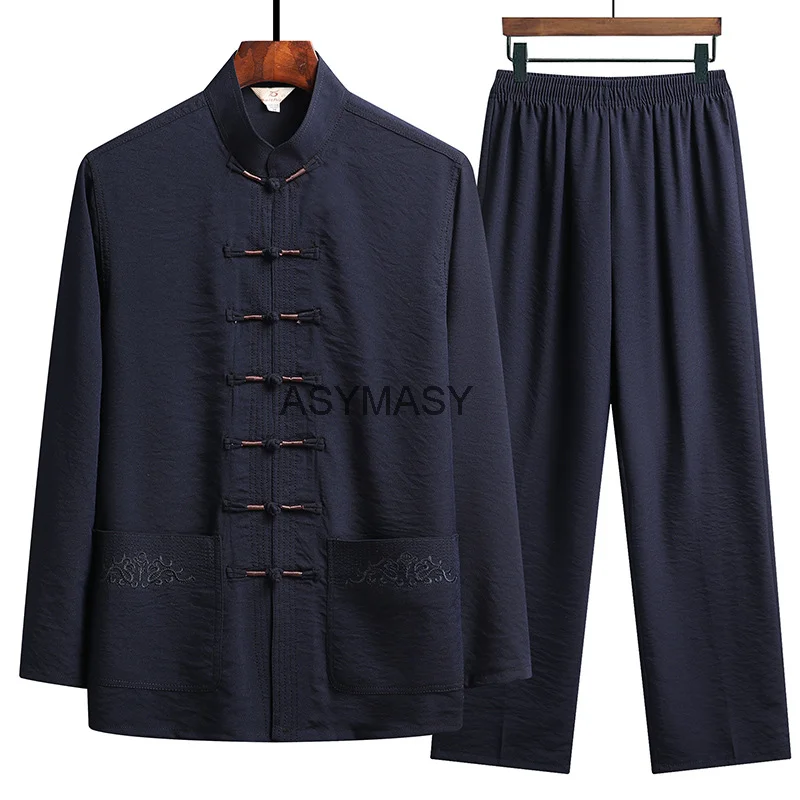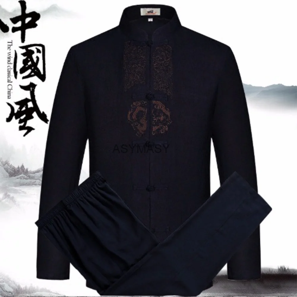 Новинка, традиционная китайская одежда для мужчин, для взрослых, Тай Чи, кунг-фу, Униформа с длинным рукавом, вышивка, hanfu, для мужчин, wushu wing chun