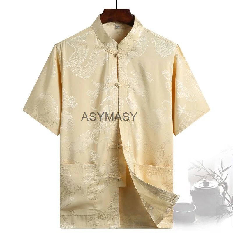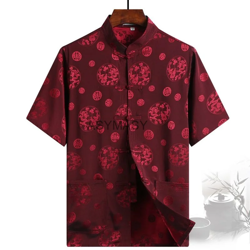 Китайская Новогодняя традиционная китайская мужская рубашка, топы, мужская одежда с воротником-стойкой, костюм Тан, Мужская блузка hanfu tai chi wushu