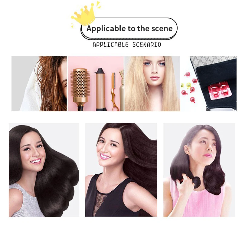 Описание:-уход за шампунем после мытья шампуня, сушить голову до тех пор, пока она не будет капать. Возьмите капсулу и нанесите соответствующее количество на волосы, которые нуждаются в уходе. Затем высушите или дайте волосам высохнуть естественным образом, оставив волосы мягкими и блестящими. -Ежедневный уход, когда волосы сухие и грубые, нанесите эфирное масло на ладонь и равномерно на середину и концы волос.