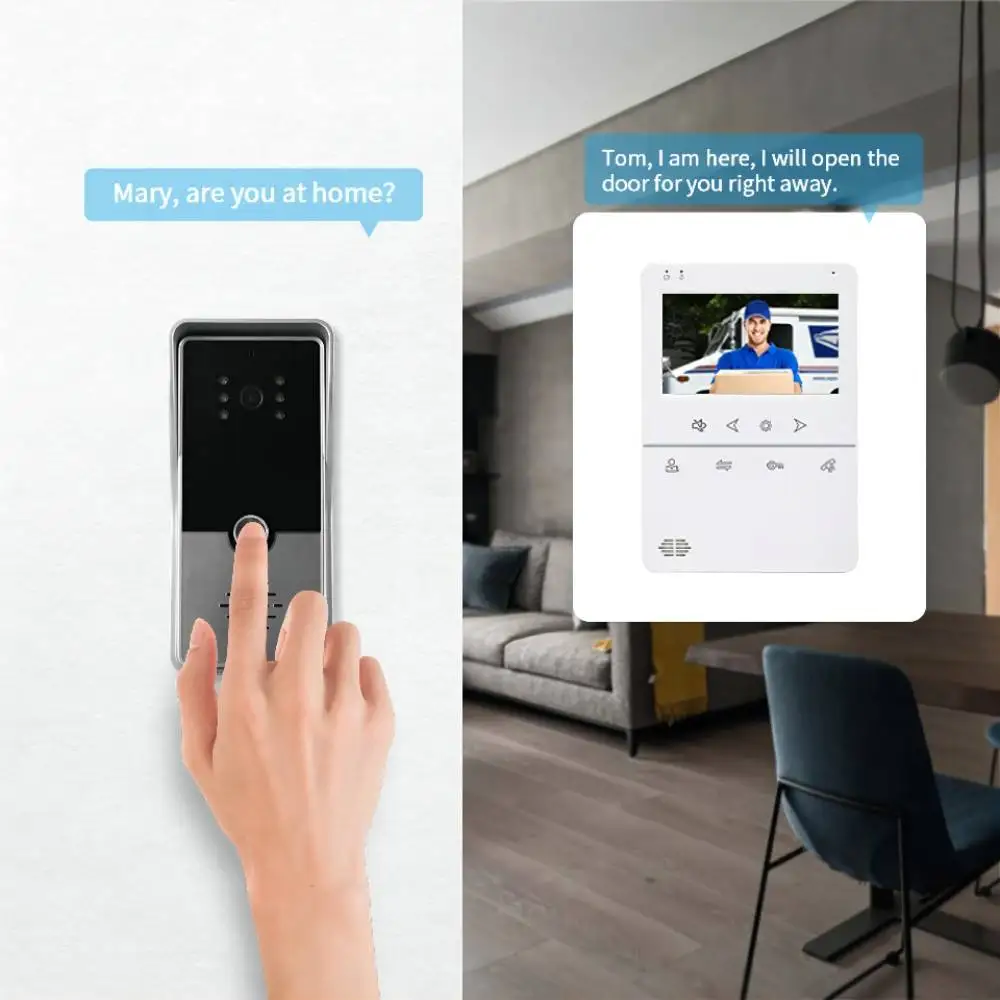 С joytimer 4,3 "проводного видеодомофона Системы, житель может сделать двухстороннюю Hands-Free Conmunication с посетитель, разблокировка дверного замка от крытый монитор.