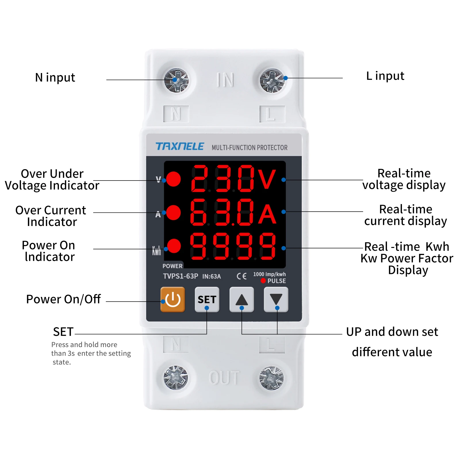 3. Защита от перегрузки по току 1A-63A (регулируется) (по умолчанию: 40A)