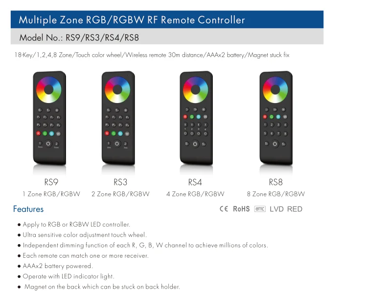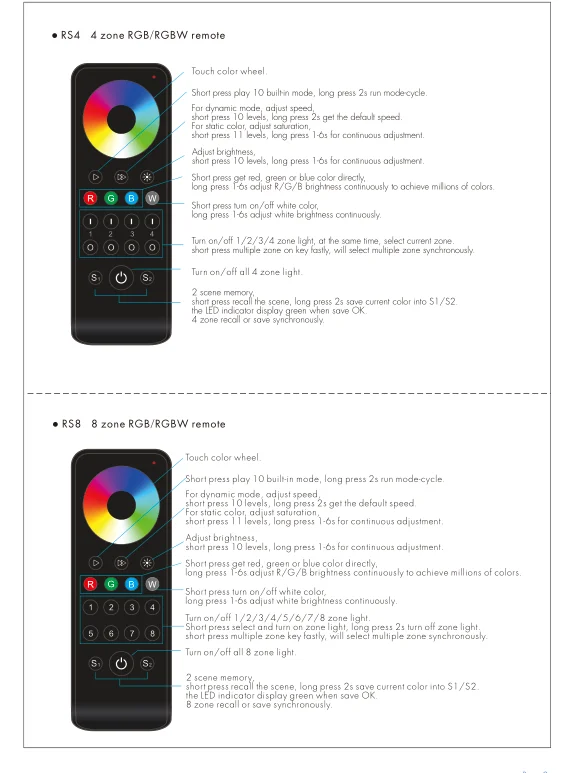 2,4 GHZ сенсорный цвет колеса RF пульт дистанционного управления 1/2/4/8 несколько зон затемнения/CCT/RGB/RGBW/RGB + CCT работа с приемником Skydance