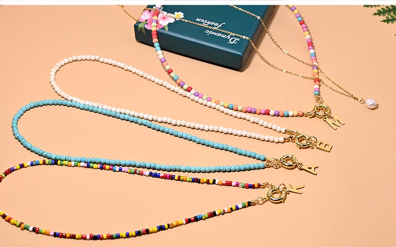 Тип товара: Новое цветное ожерелье с буквенным принтом, ожерелье для женщин, золото, нержавеющая сталь, Пресноводный Жемчуг, ожерелье, оптовая продажа