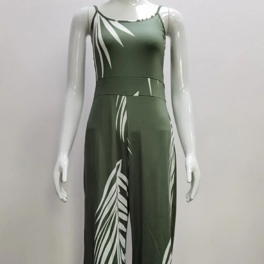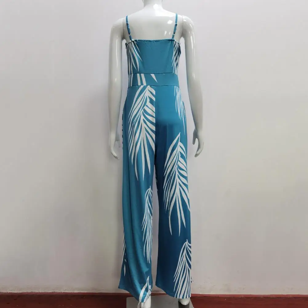Женский комбинезон с v-образным вырезом, дышащий комбинезон с принтом листьев, уличная одежда