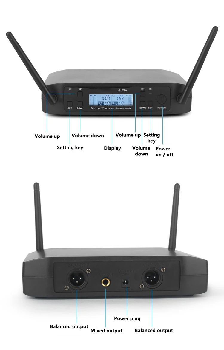 Функция автоматического сканирования и функция защиты от помех: микрофонная система УВЧ оснащается функцией автоматического сканирования, что позволяет системе искать канал меньше помех для сопряжения с передатчиками. Он также имеет функцию блокировки для блокировки выбранной частоты. С беспроводной гарнитурой, беспроводным лацканом lavalier и портативным микрофоном в одном наборе, он удовлетворяет различные потребности. Конструкция 2 антенн увеличивает способность анти-помех и уменьшает помехи между каждым каналом.