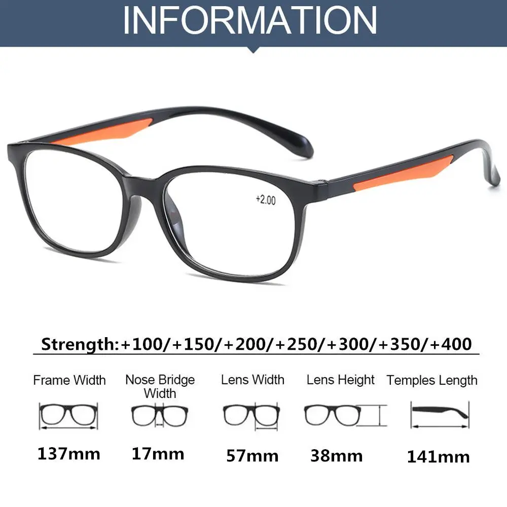100% новый и высокое качество. Тип: очки для чтения Материал: TR90 Длина оправы: 137 мм Ширина линз: 57 мм Высота линз: 38 мм Длина ножек очков: 141 мм Цвет: черный, коричневый Прочность: + 100/+ 150/+ 200/+ 250/+ 300/+ 350/+ 400 Стиль: ультра легкий, модный, элегантный Пол: мужчин, женщин и мужчин Особенности: Высококачественные элегантные очки для чтения. Материал TR90, ультра-легкий, удобный в ношении. Можно носить с повседневными нарядами или для торжественных случаев. Они подходят для мужчин и женщин с дальнозоркостью зрения. Посылка включает в себя: очки для чтения 1 шт.