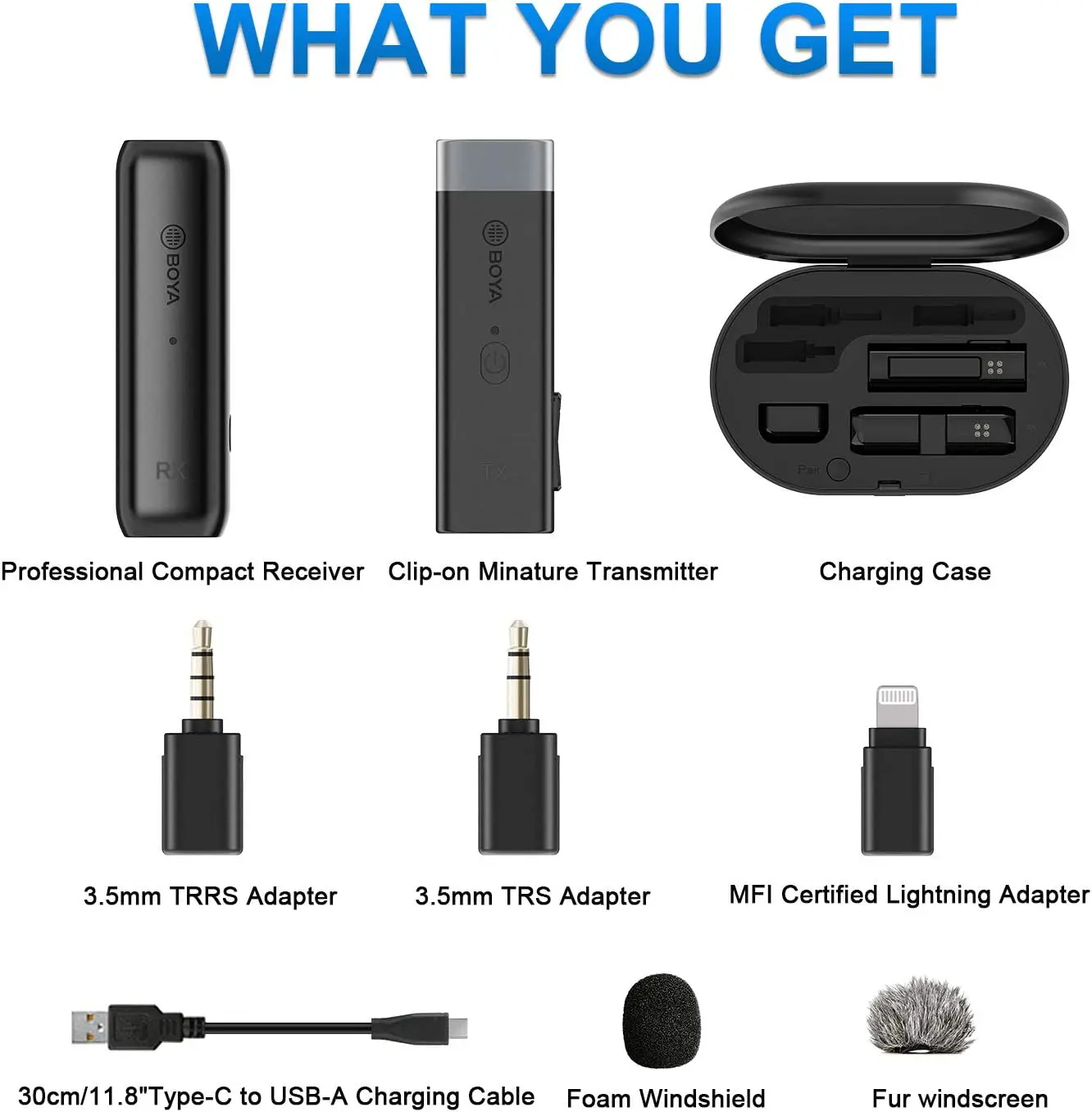 BOYA BY-WM3D 2,4 ГГц Беспроводная микрофонная система особенности с одним передатчиком и одним приёмником, оба компактный и легкий.