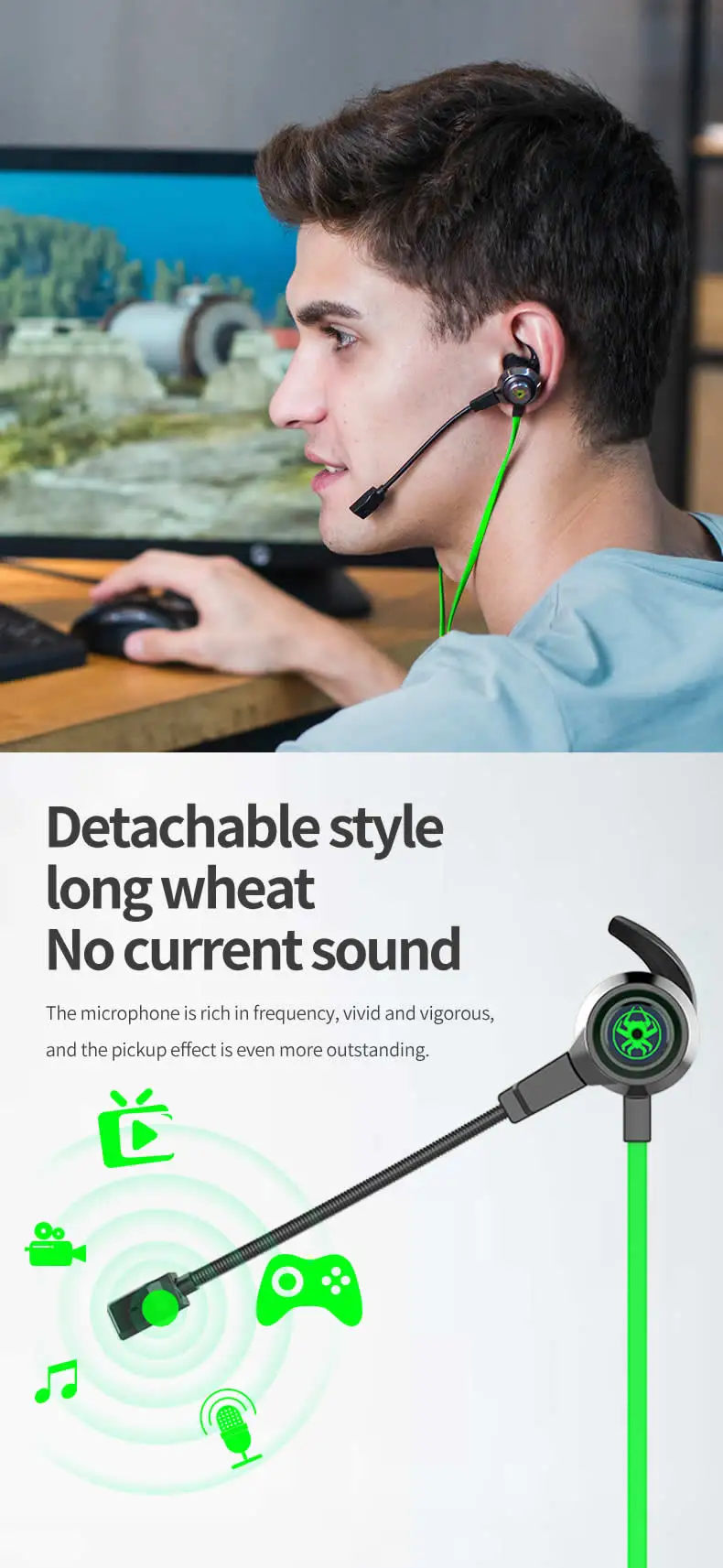 1. Мощный анти-помех съемный игровой микрофон.