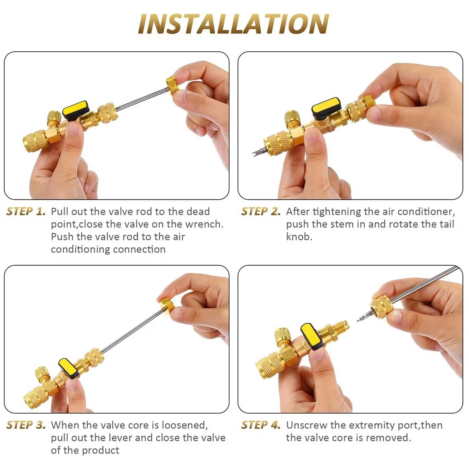 Шаг 1: Вытяните стержень клапана до мертвой точки, закройте клапан на гаечный ключ, отрегулируйте соединитель гаечного ключа к интерфейсу кондиционирования воздуха, и