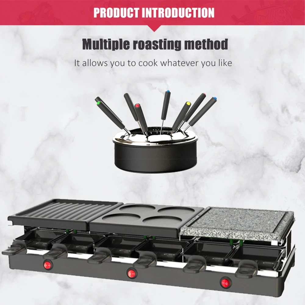 • 【Для 12 человек 】 большие вечерние гриль идеально подходят для еды с друзьями и семьей. Устройство обеспечивает пространство для гриля для реклетт, фондю или электрического гриля до 12 человек.