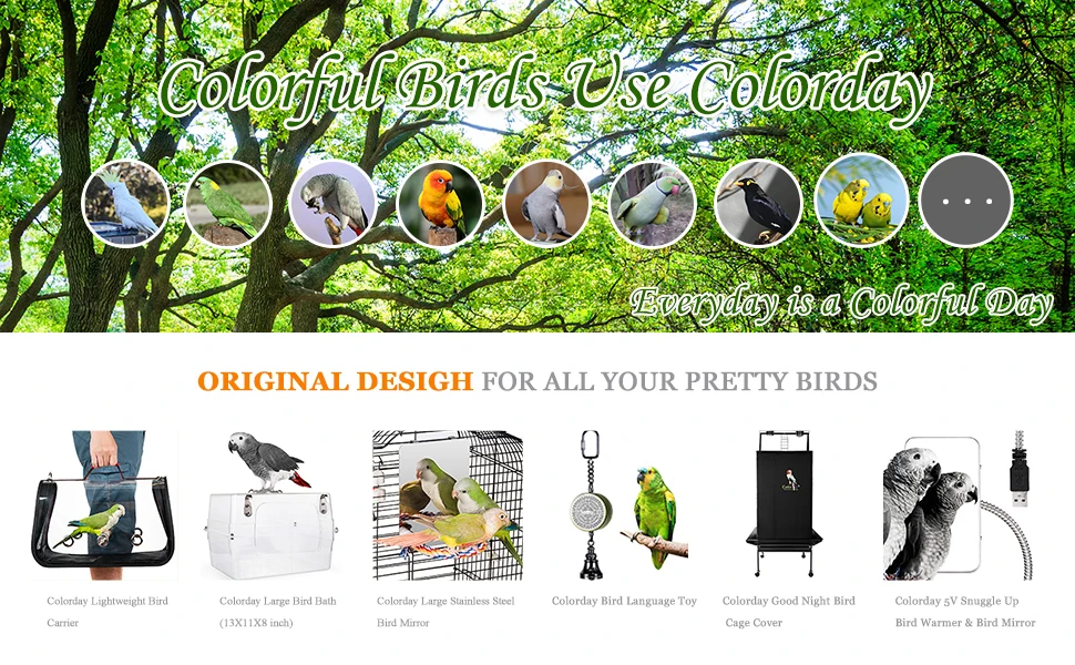 Зеркало Colorday bird сделано из утолщенной нержавеющей стали, что делает его более безопасным и прочным вариантом на рынке. Больше не бойтесь жевания птиц.