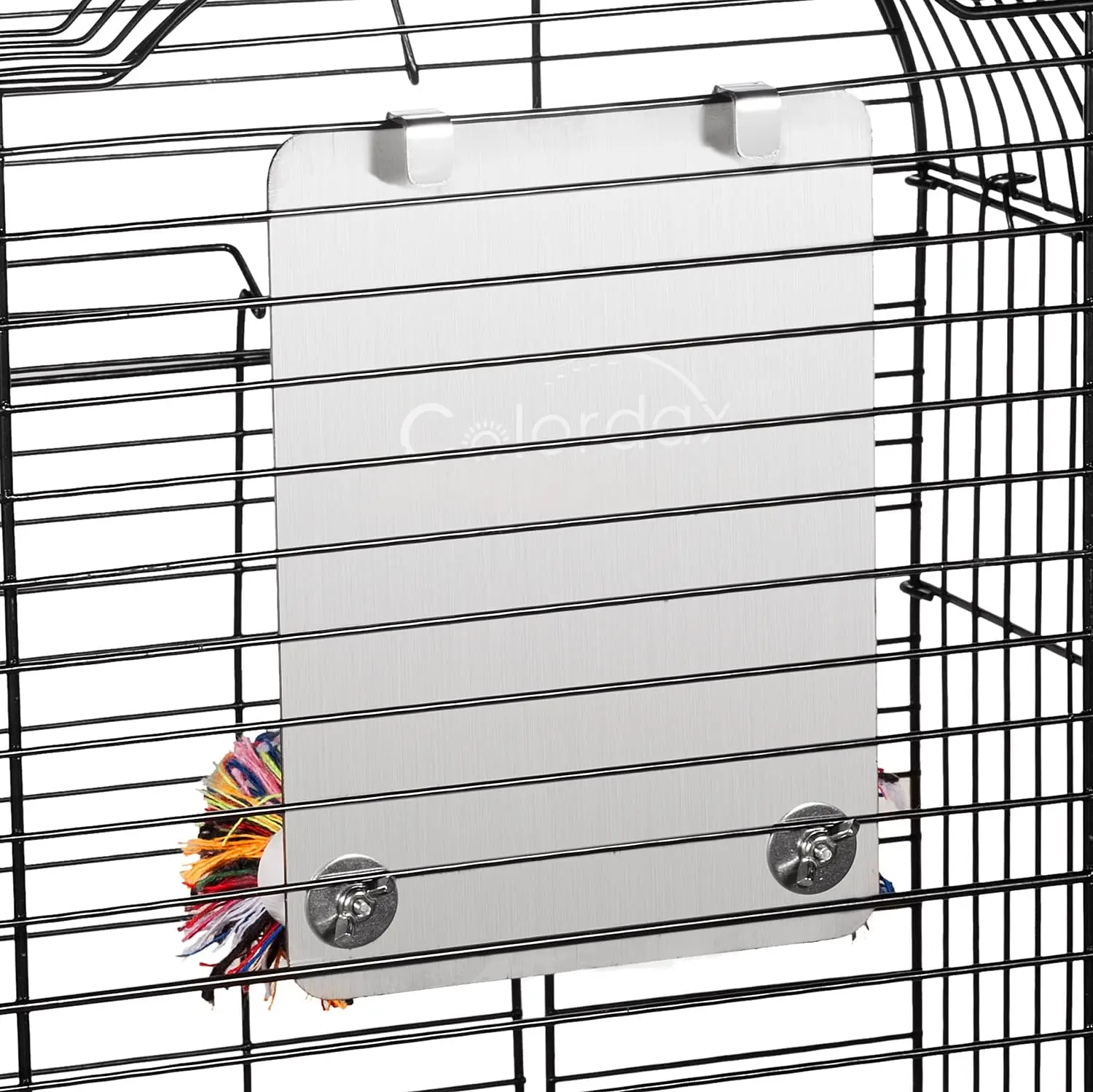 Большие, прочные и прочные интегрированные металлические крючки позволяют повесить зеркало в любом месте клетки.