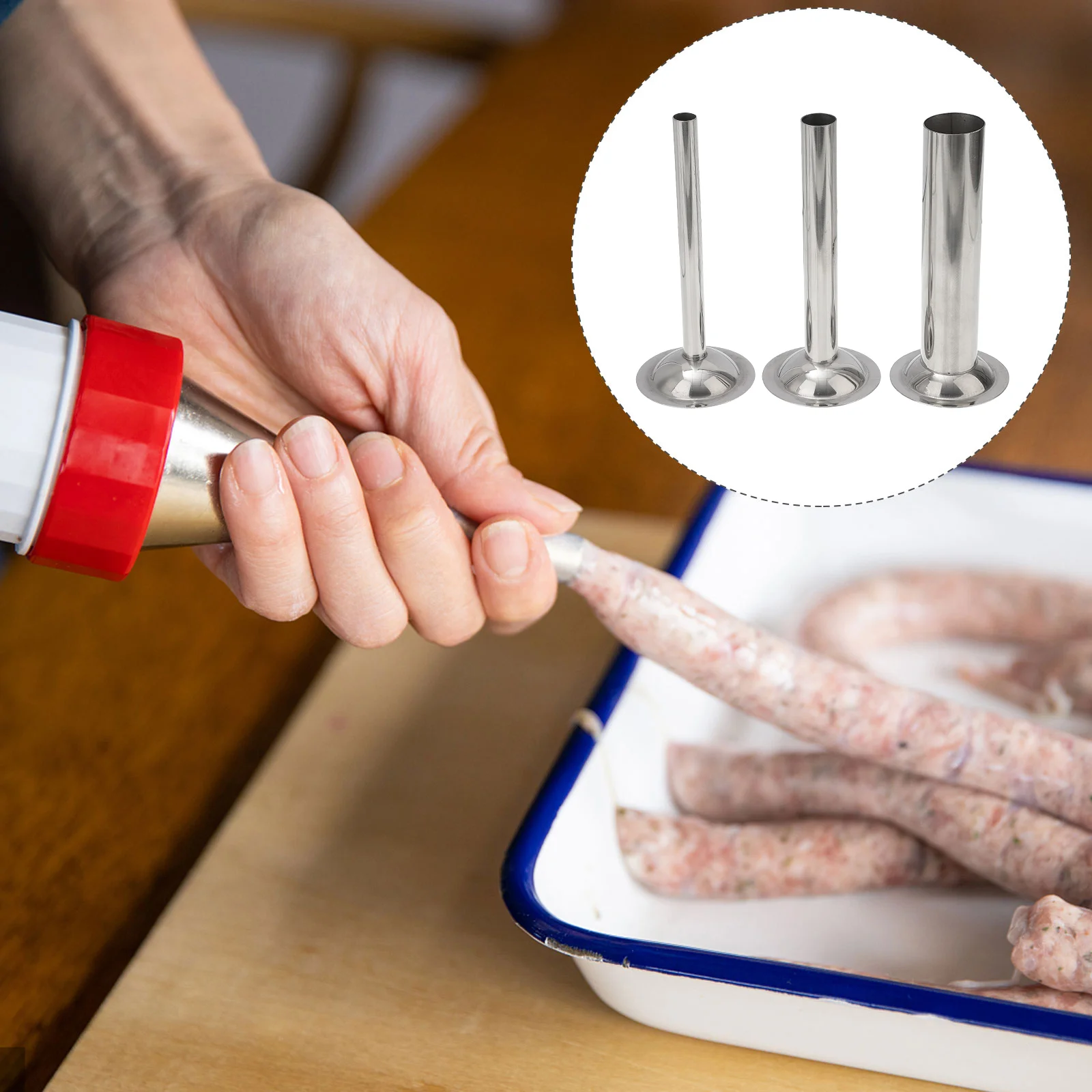 3 набора для изготовления колбас из нержавеющей стали, кухонные трубки для колбасы, насадка для кухонной мясорубки, серебро