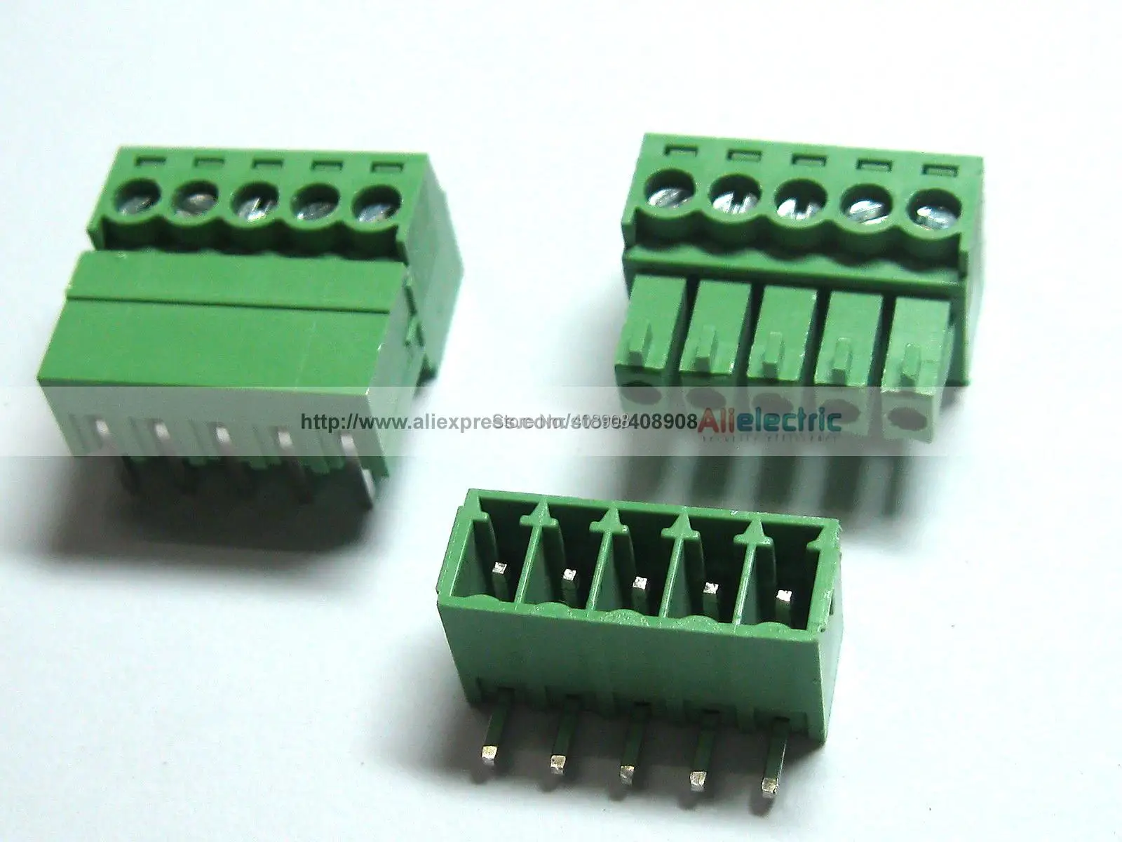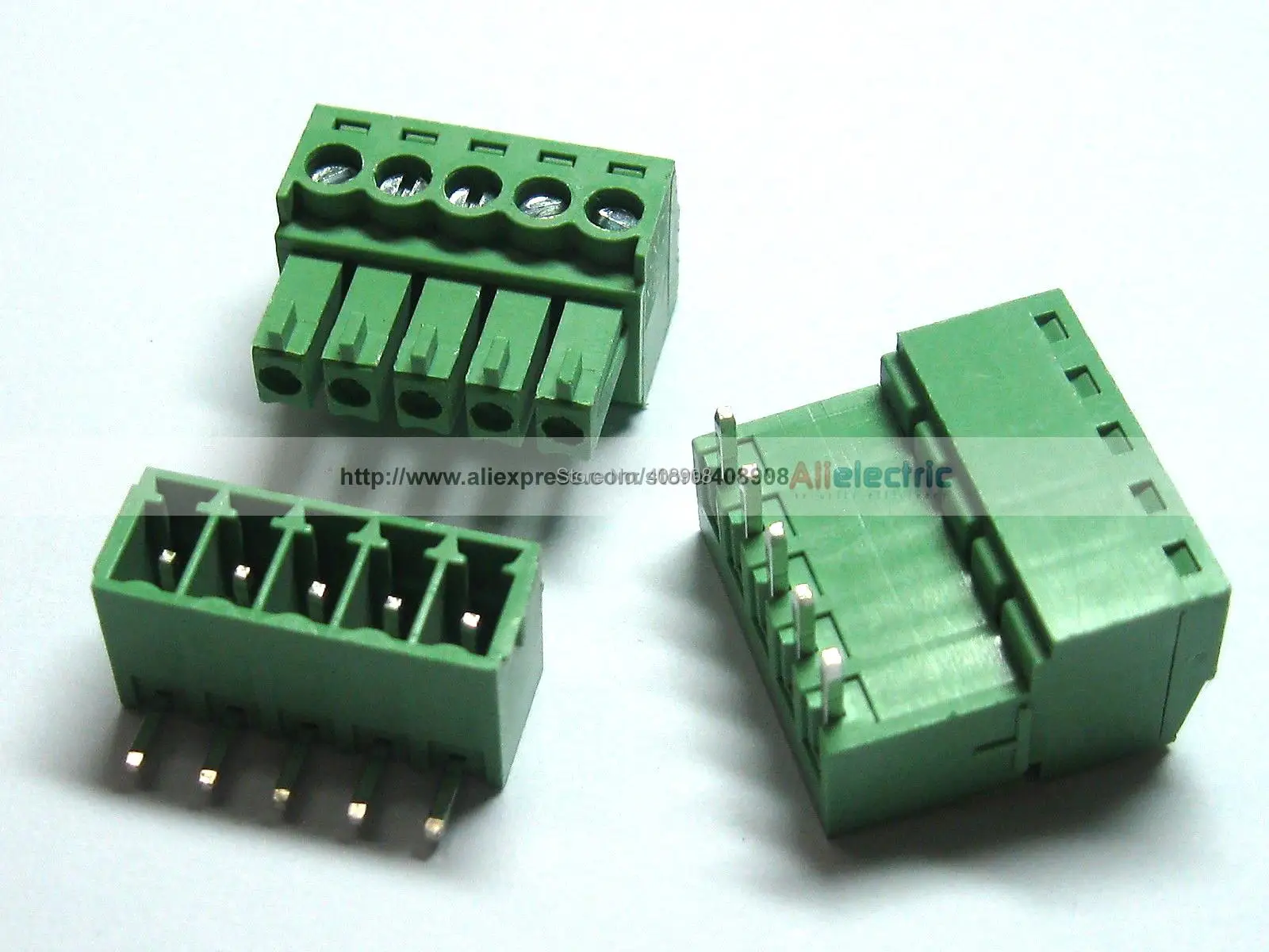 | 100 Pcs Screw Terminal Block Connector Pitch 3.5mm Angle 5 pin/way Green Color Pluggable Type |