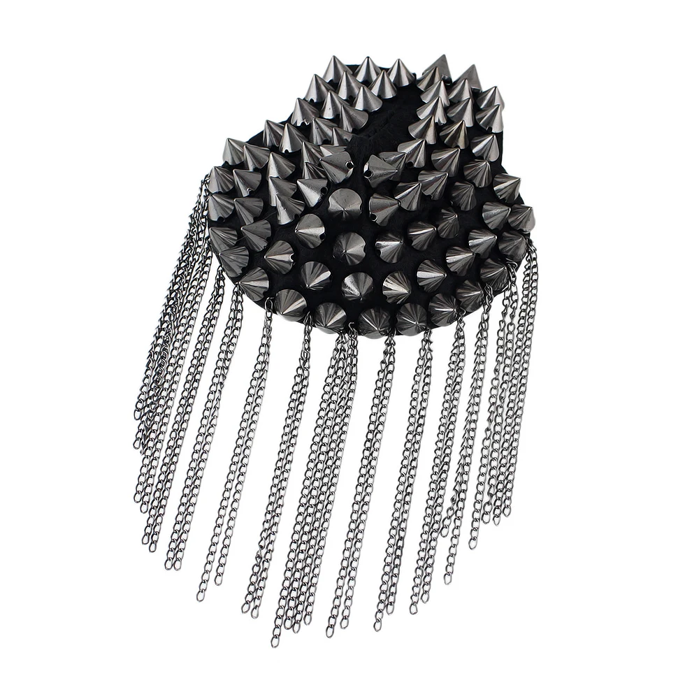 1 pc Hot sale Punk style Cool Element Spike Chain Tassels Brooch Shoulder Board Maxyum Wholesale